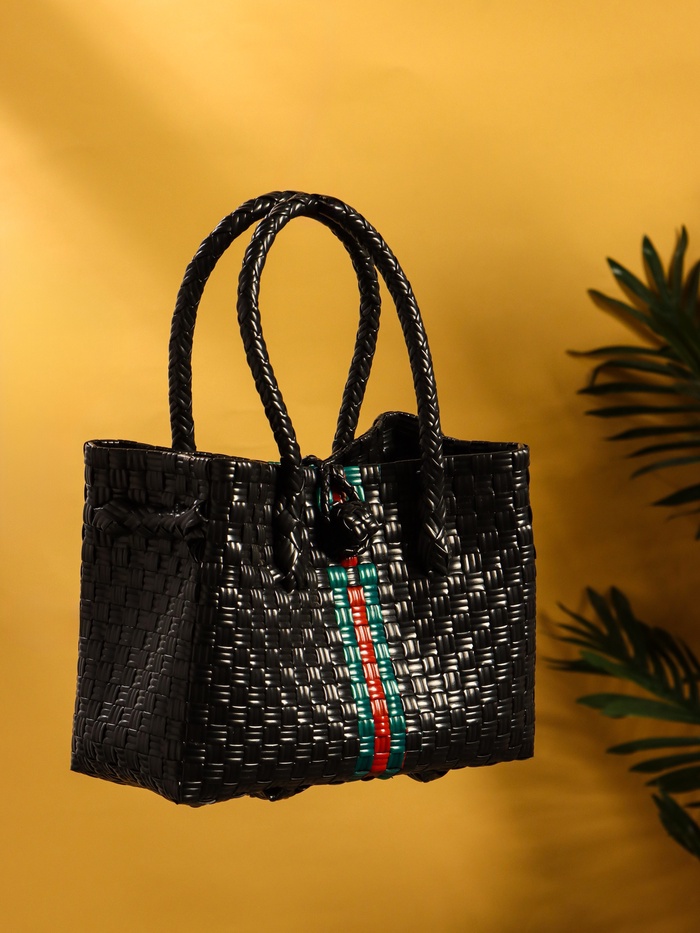 Сумка плетёная пластиковая, 23×11×30 см, чёрная — Характеристики