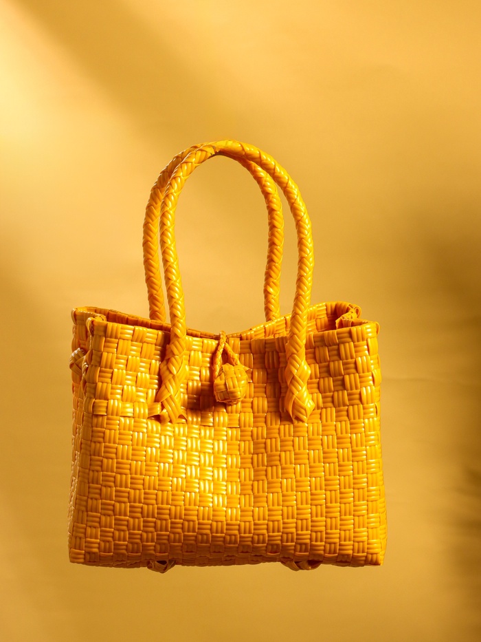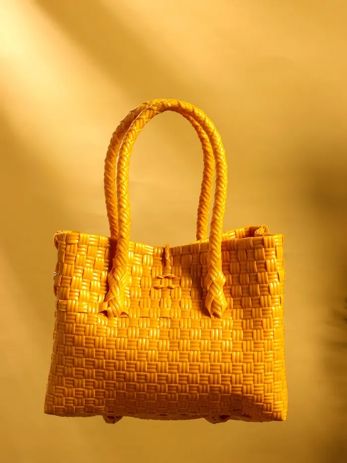 Сумка плетёная пластиковая, 23×11×30 см, жёлтая — Характеристики