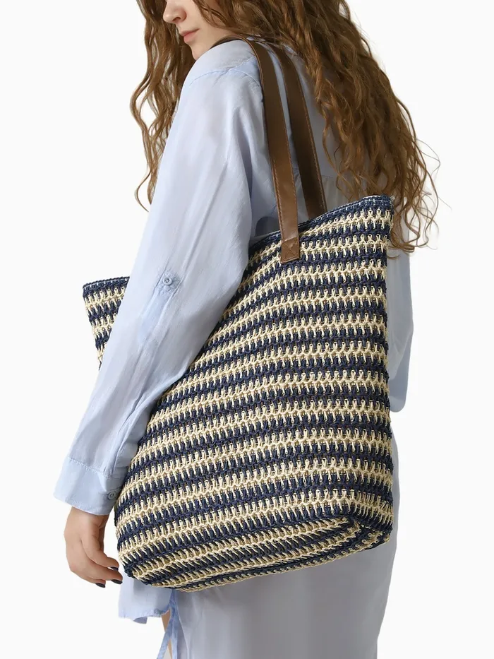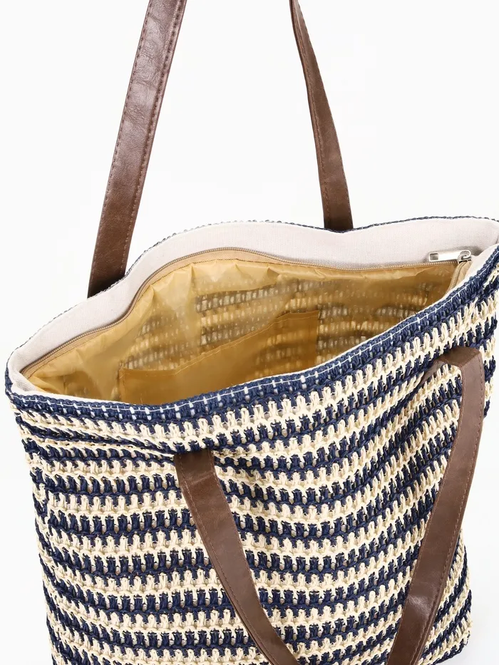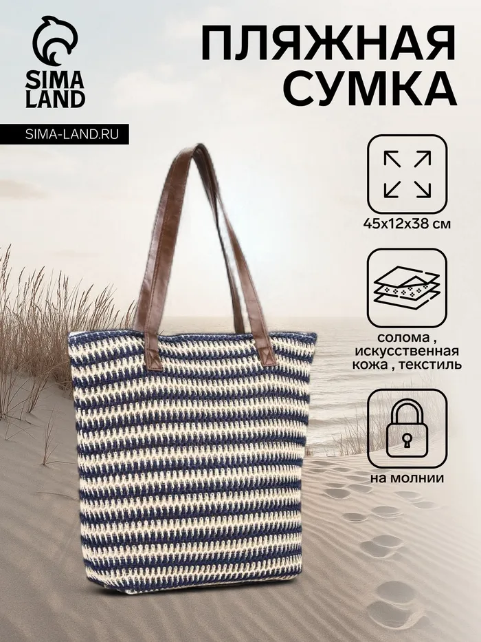 Сумка пляжная на молнии, на подкладке, белая/синяя — Характеристики