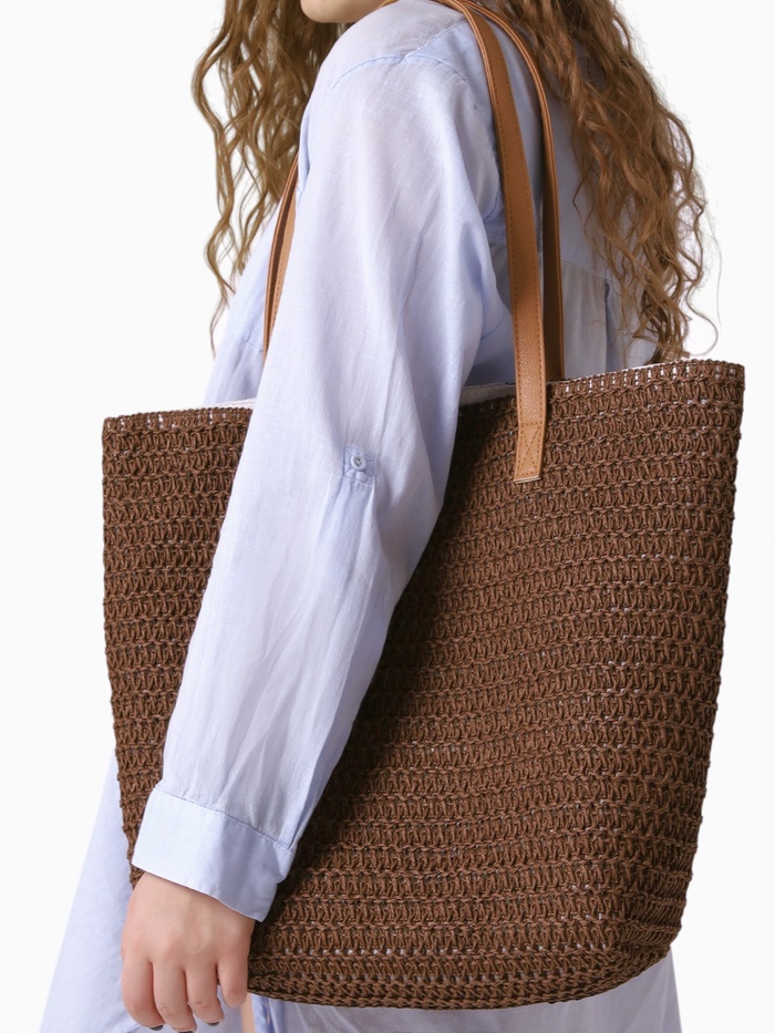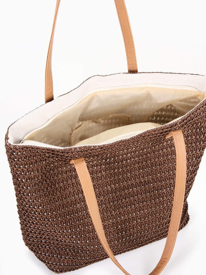 Сумка пляжная на молнии, на подкладке, коричневая — Характеристики