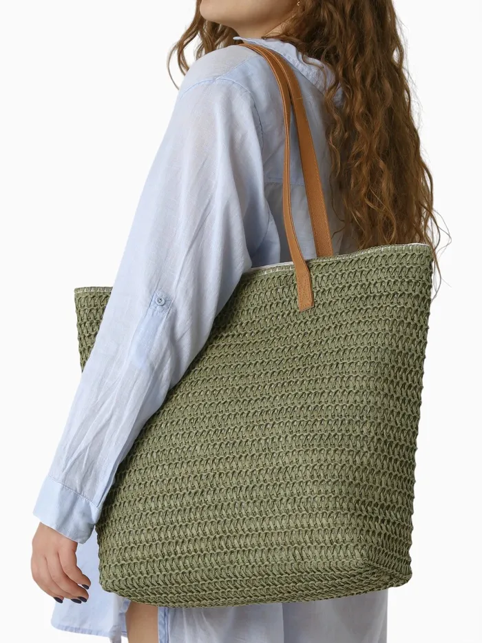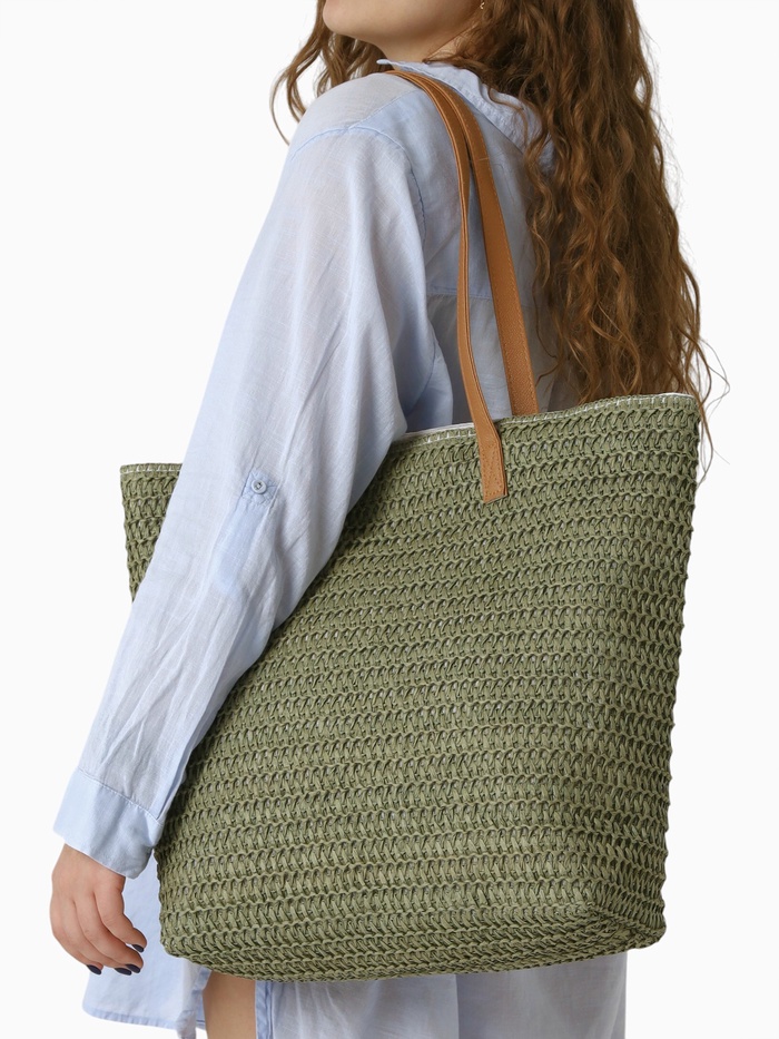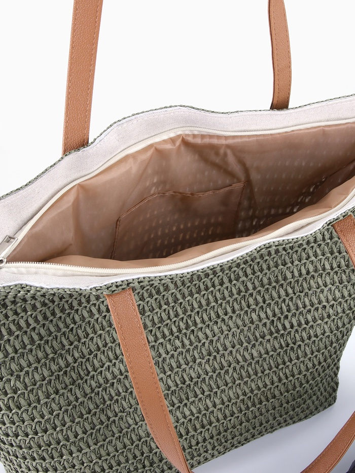 Сумка пляжная на молнии, на подкладке, зелёная — Характеристики