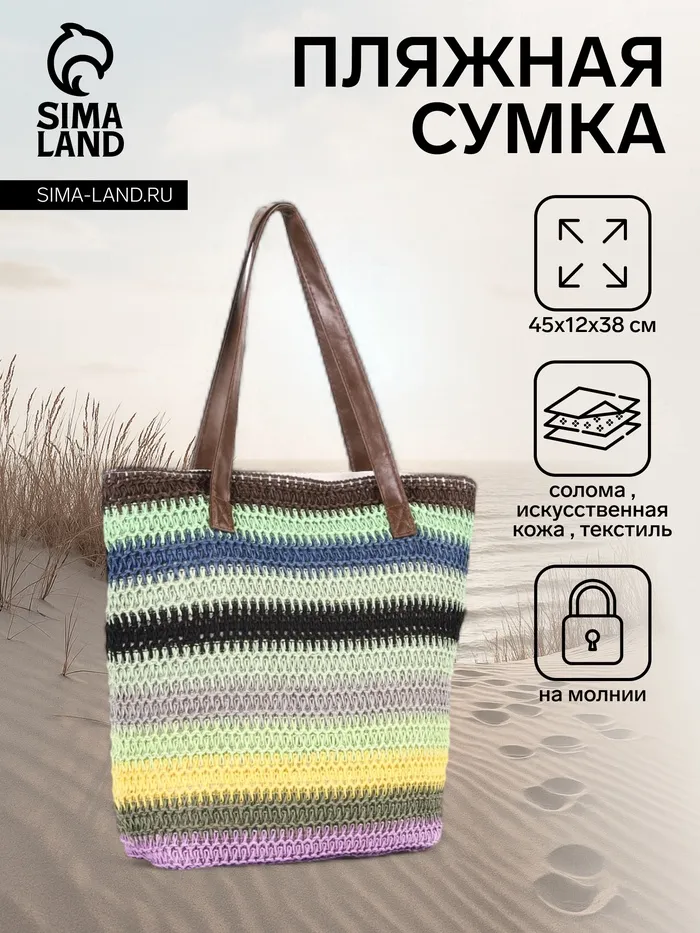 Наш пляжный шопер — это стильное и удобное решение для летнего отдыха. Созданный специально для женщин, этот вместительный аксессуар с молнией идеально подходит для летних прогулок и пляжных дней.