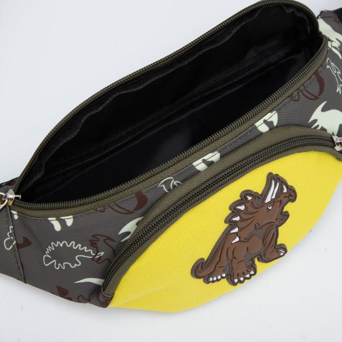 Сумка поясна детская для мальчика на молнии, цвет коричневый/жёлтый, «Динозавр» — Характеристики