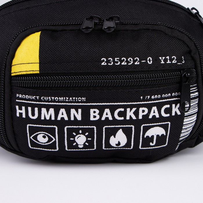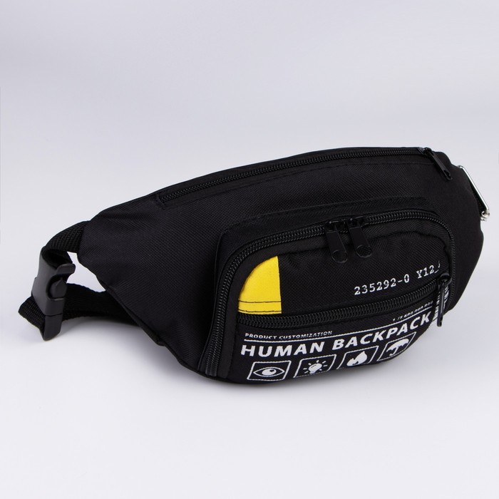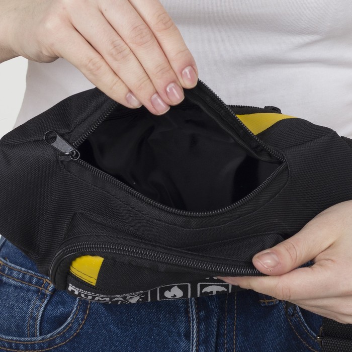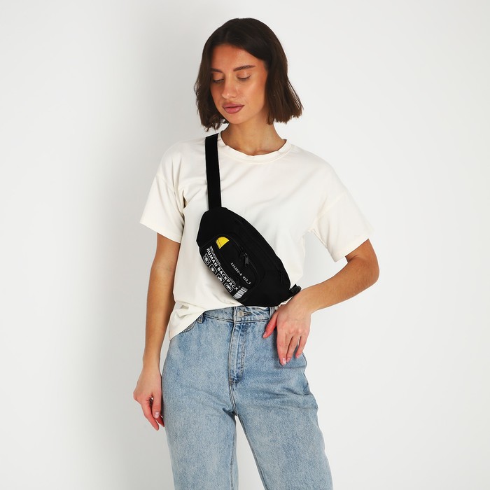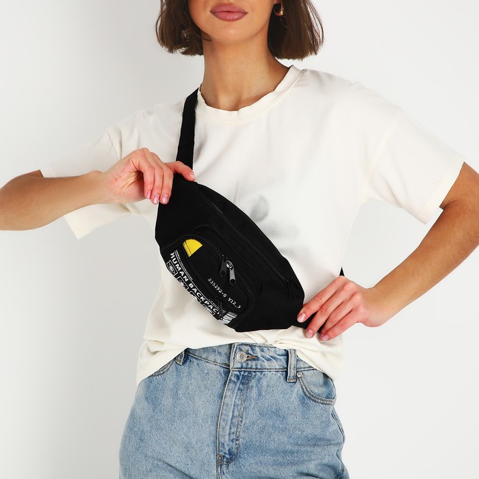 Сумка поясная «Билет», 28×7×14 см, отдел на молнии, наружный карман, чёрная — Характеристики