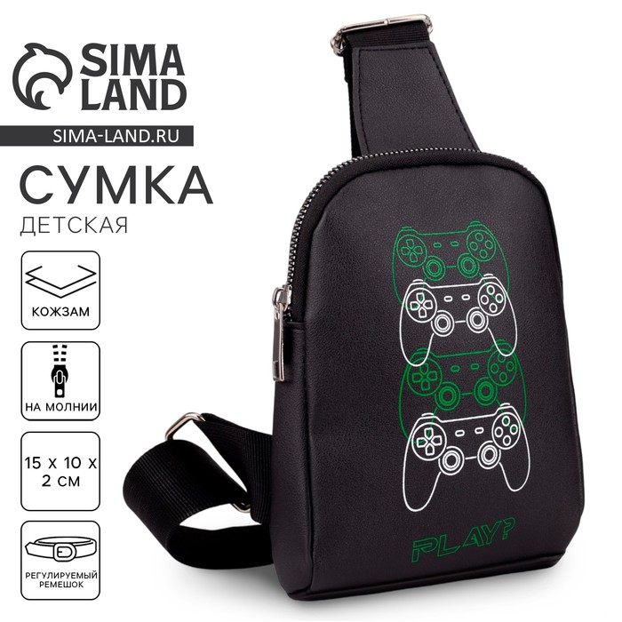 Сумка через плечо PLAY, на молнии, чёрная, искусственная кожа