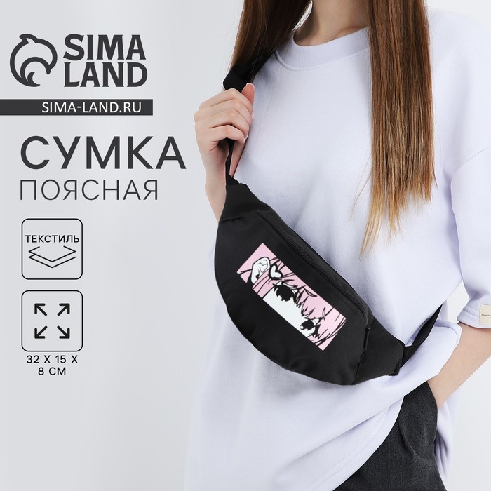 Сумка поясная «Аниме», 32×8×15 см, отдел на молнии, наружный карман, чёрная