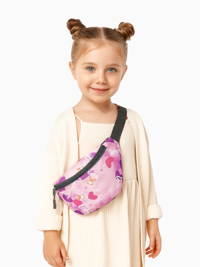 Сумка поясная детская для девочки на молнии, розовая
