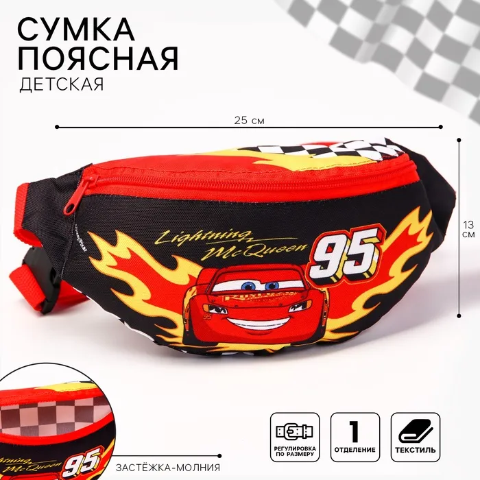 Сумка поясная детская для мальчика, 25х6х13 см, Тачки — Характеристики