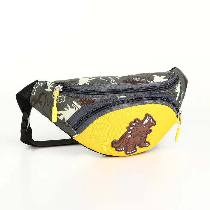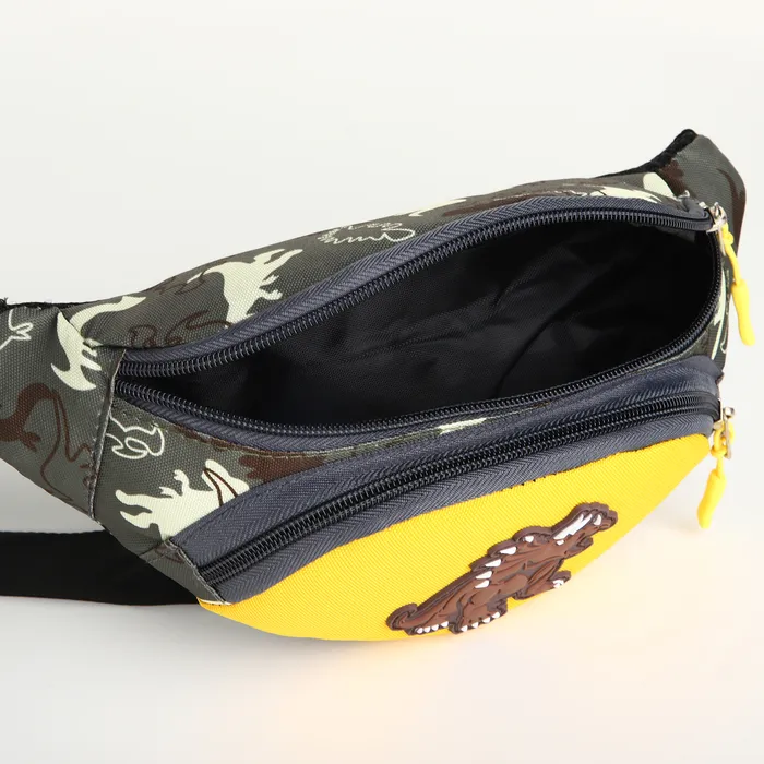 Сумка поясная детская для мальчика на молнии, цвет зелёный/жёлтый — Характеристики
