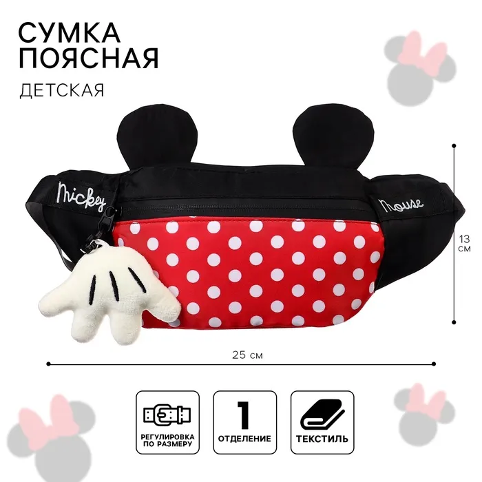 Сумка поясная детская с ушками, 25х6х13 см, Минни Маус — Характеристики