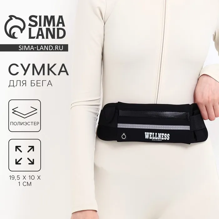 Сумка поясная для бега, на молнии, чёрная — Характеристики