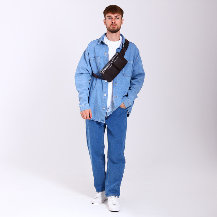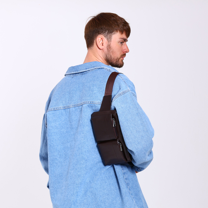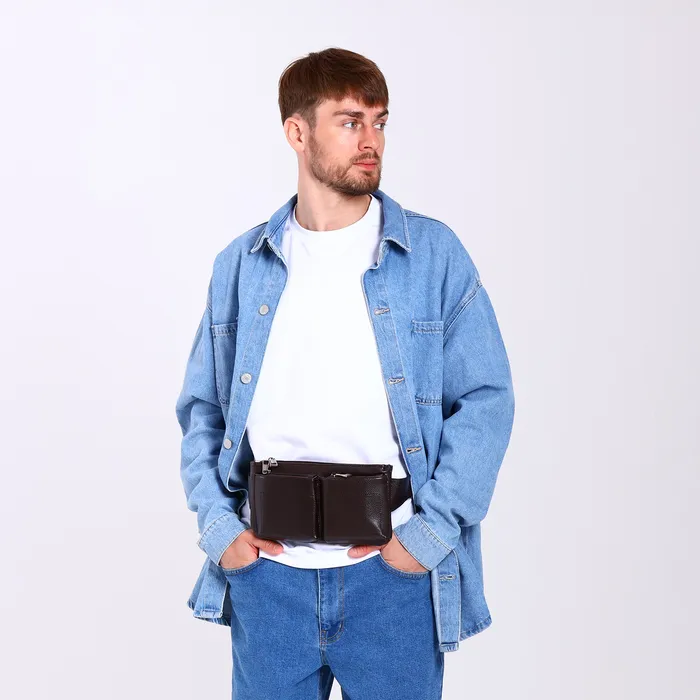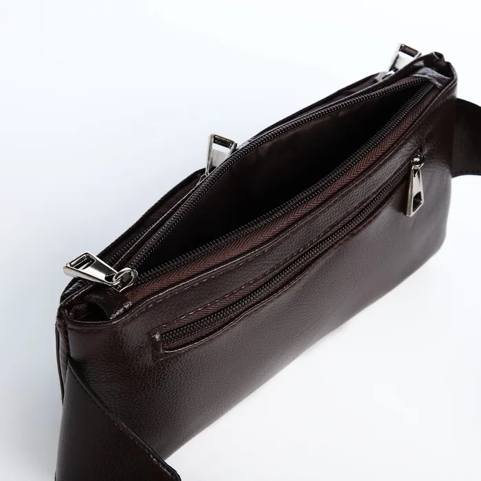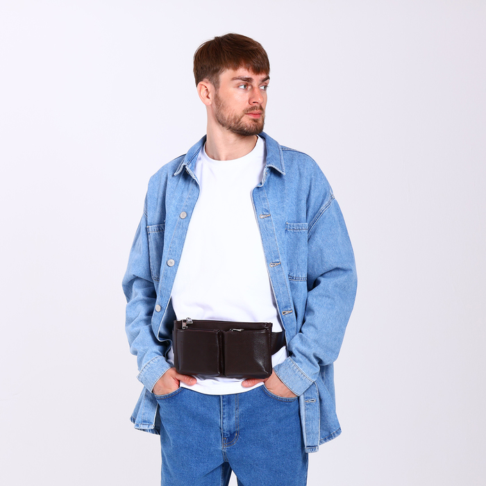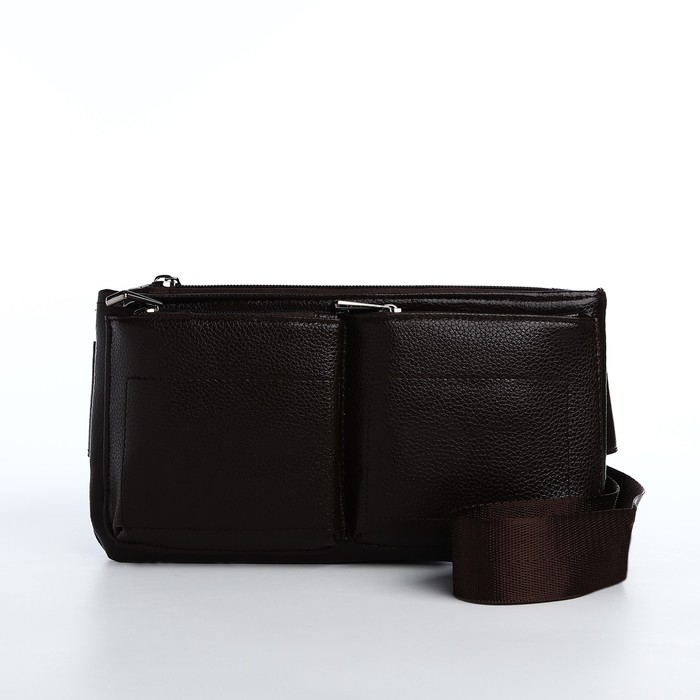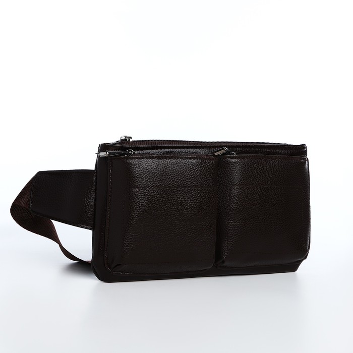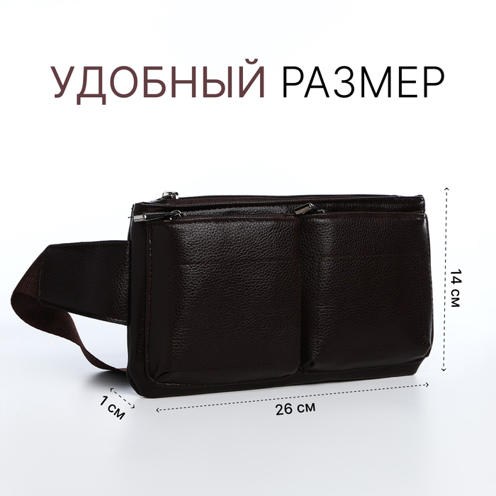 Сумка поясная на молнии, 2 наружных кармана, 26×1×14 см, коричневая — Характеристики