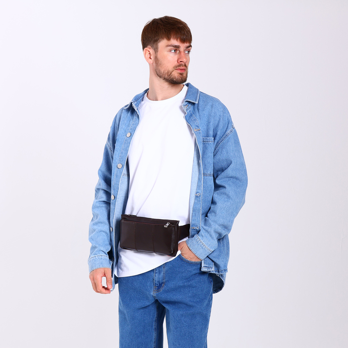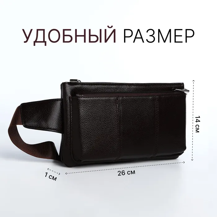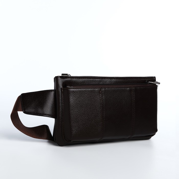 Сумка поясная на молнии, 2 наружных кармана, цвет коричневый — Характеристики