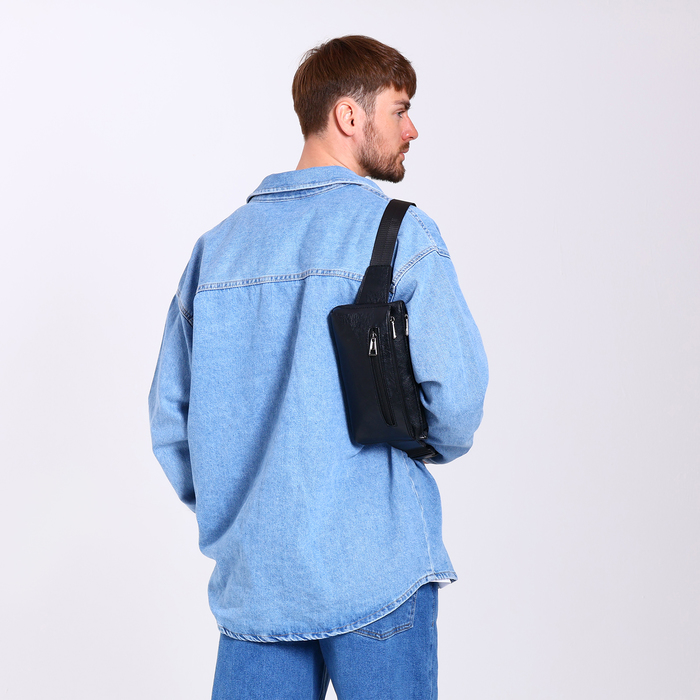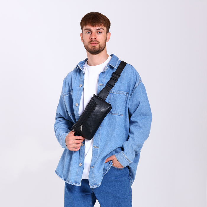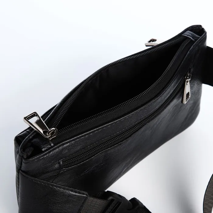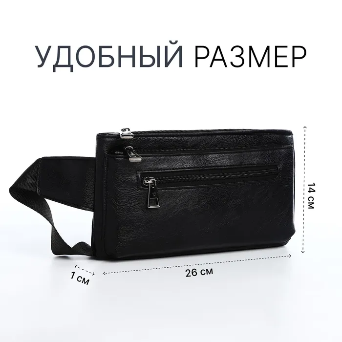 Сумка поясная на молнии, 3 наружных кармана, цвет чёрный — Характеристики