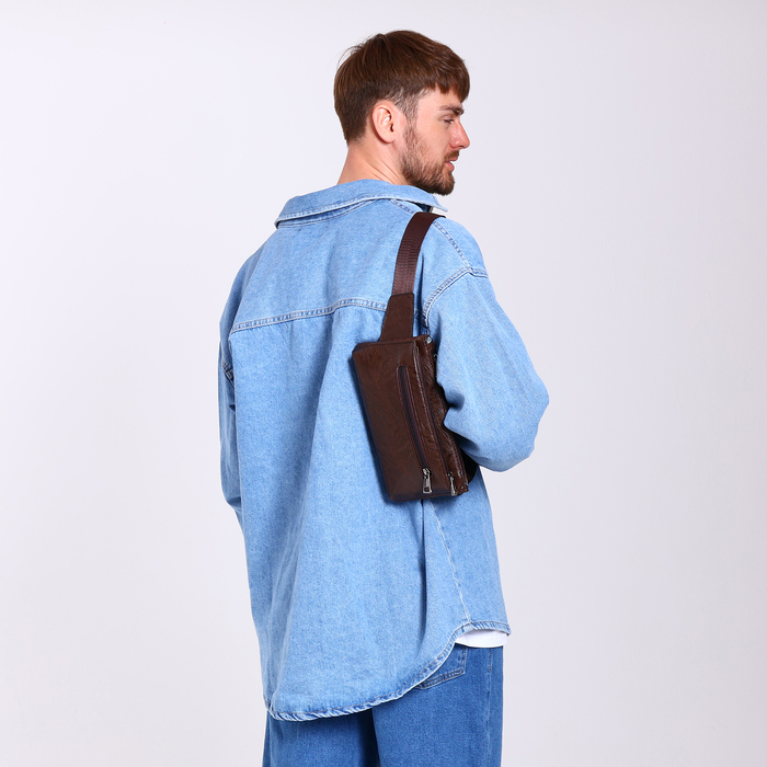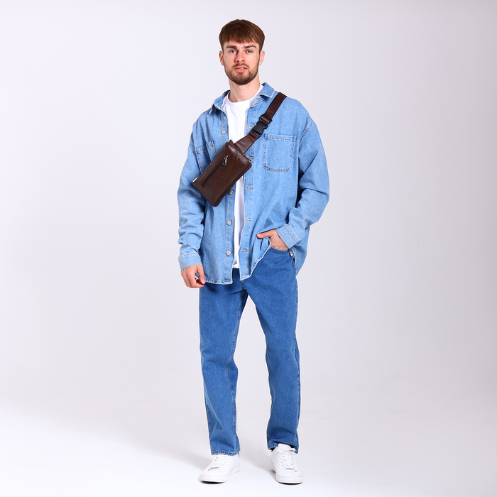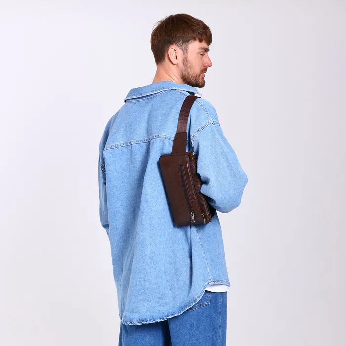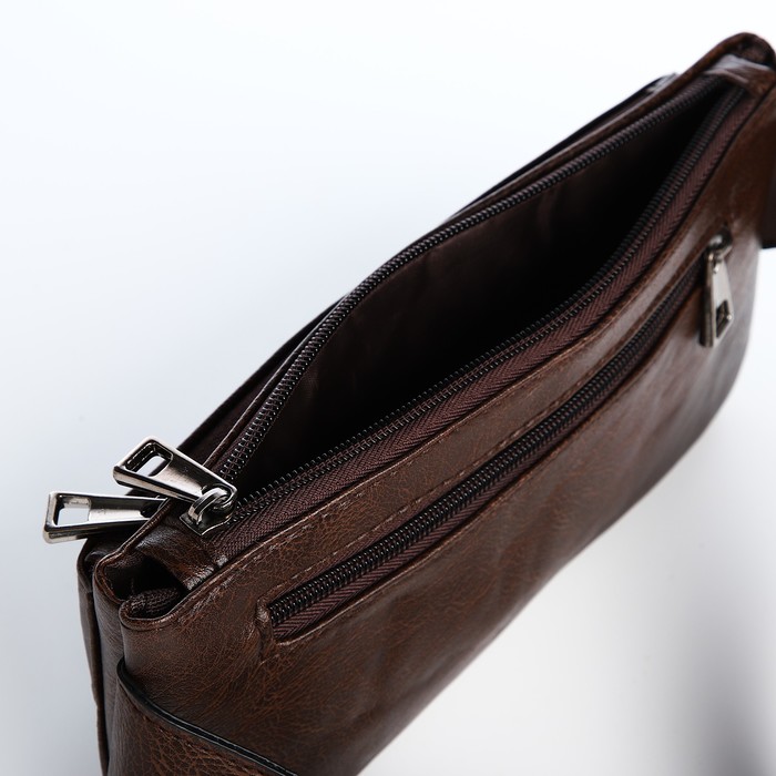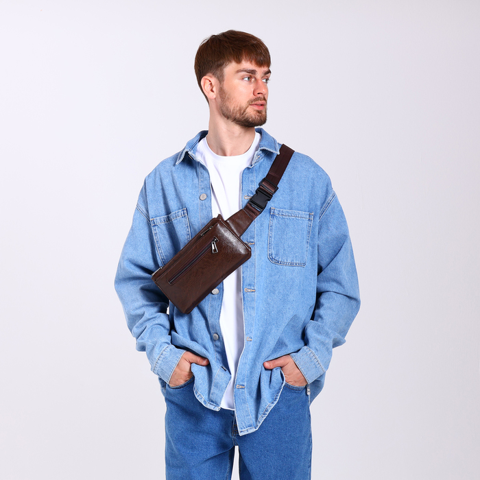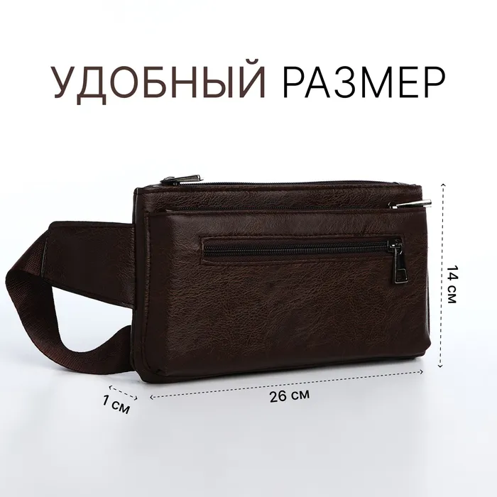 Сумка поясная на молнии, 3 наружных кармана, цвет коричневый — Характеристики