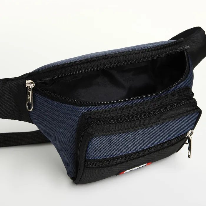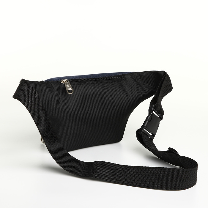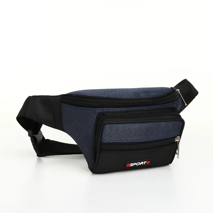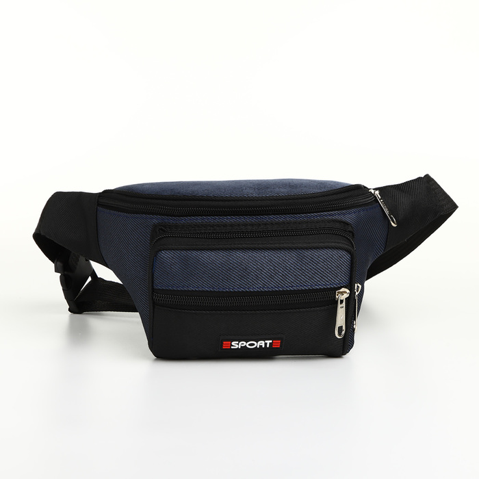 Сумка поясная на молнии, 3 наружных кармана, цвет синий/чёрный — Характеристики