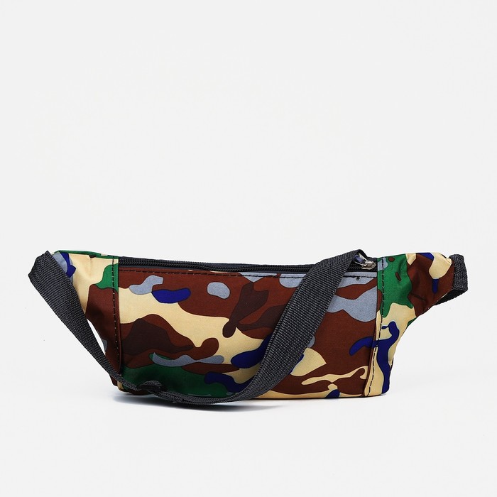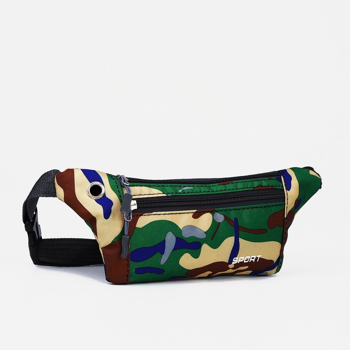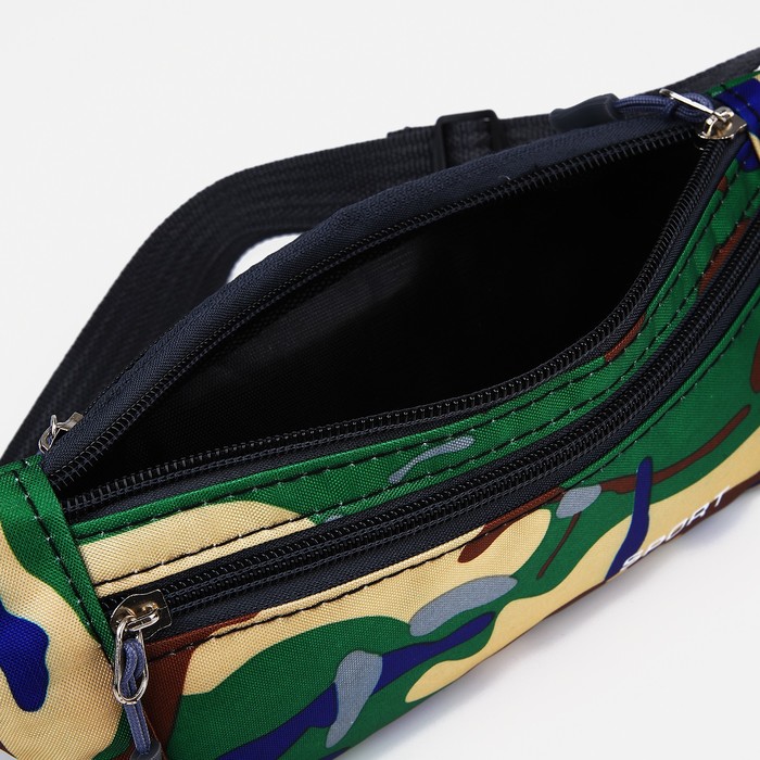 Сумка поясная на молнии, наружный карман, цвет зелёный/разноцветный — Характеристики