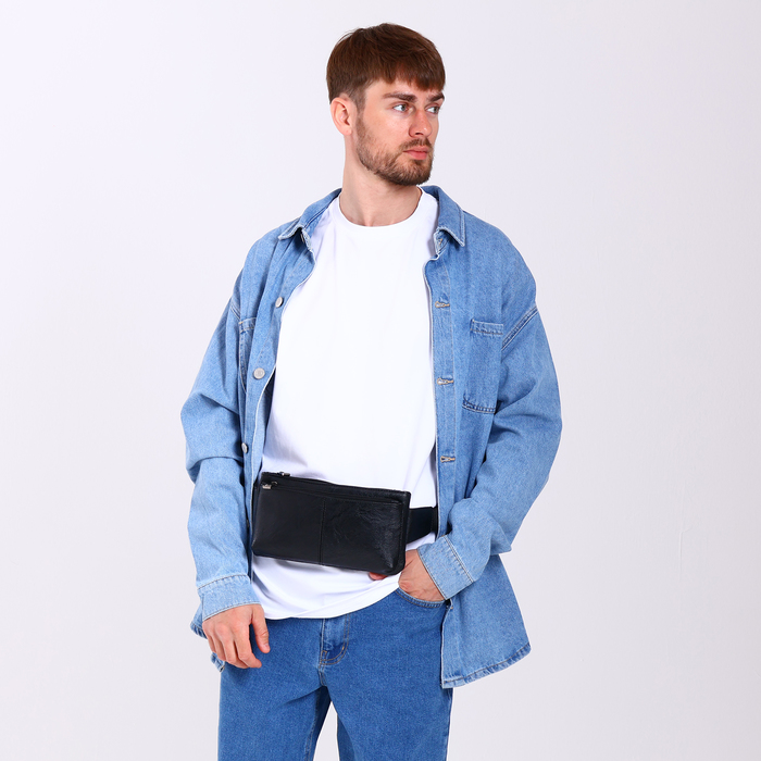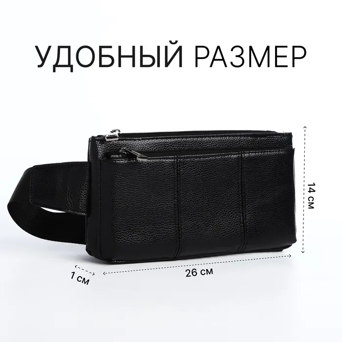 Сумка поясная на молнии, с 2 карманами, 26×1×14 см, чёрная — Характеристики