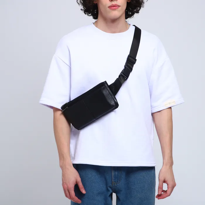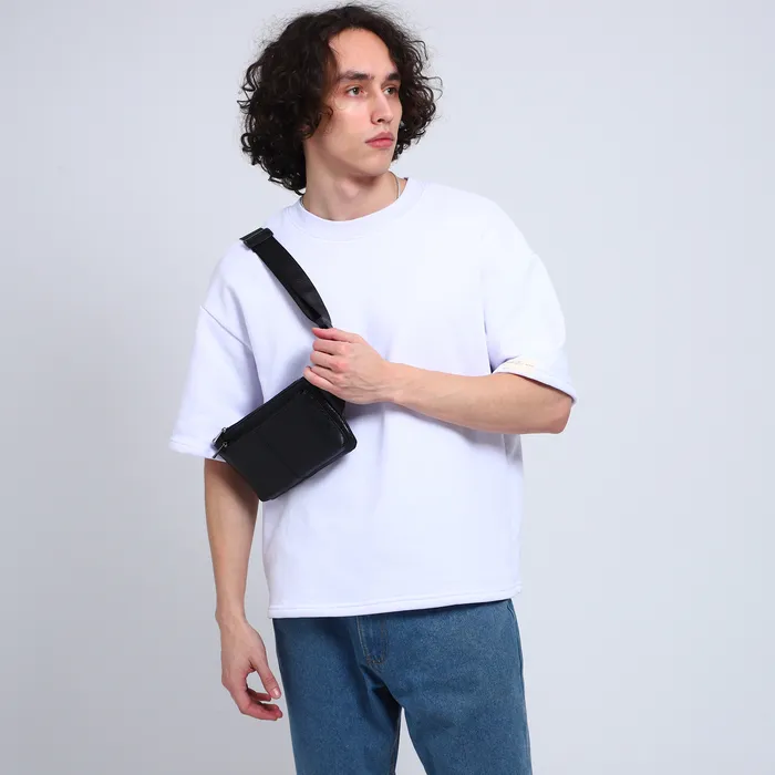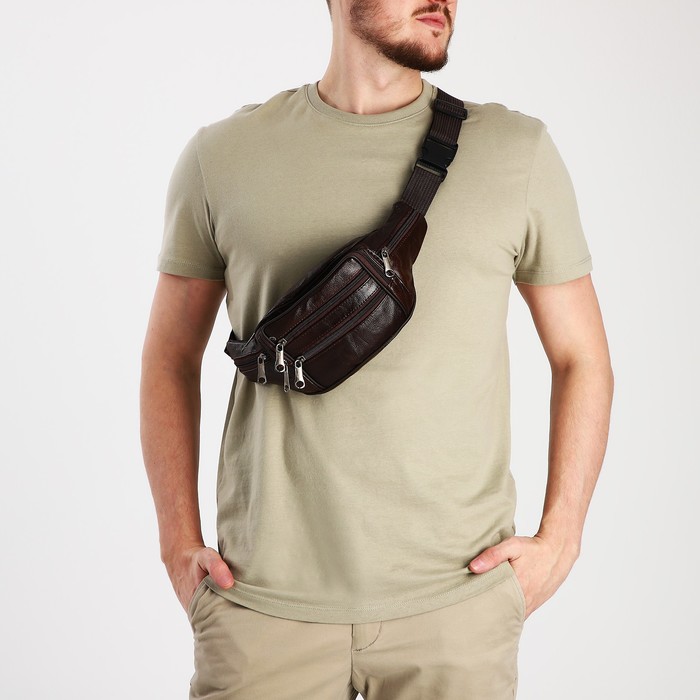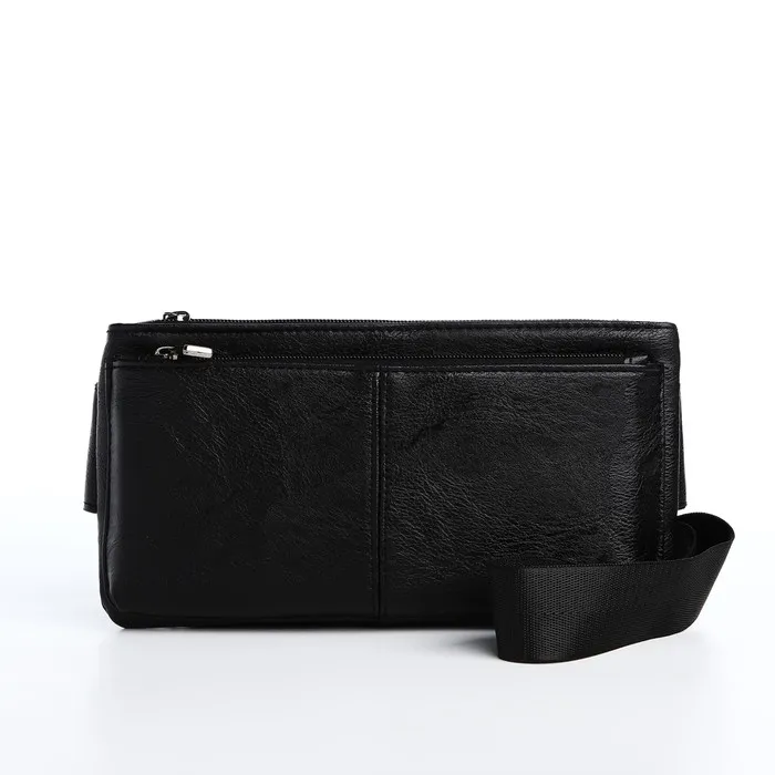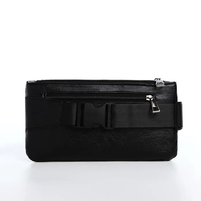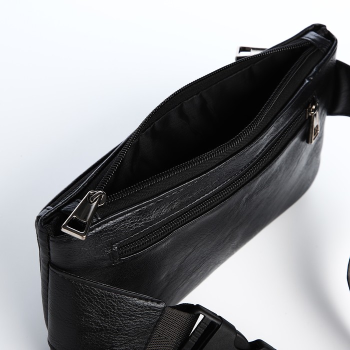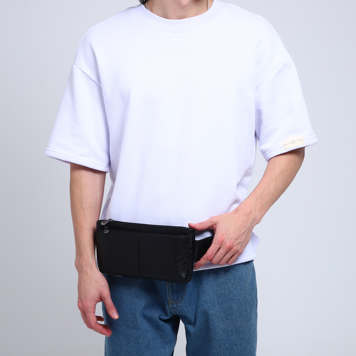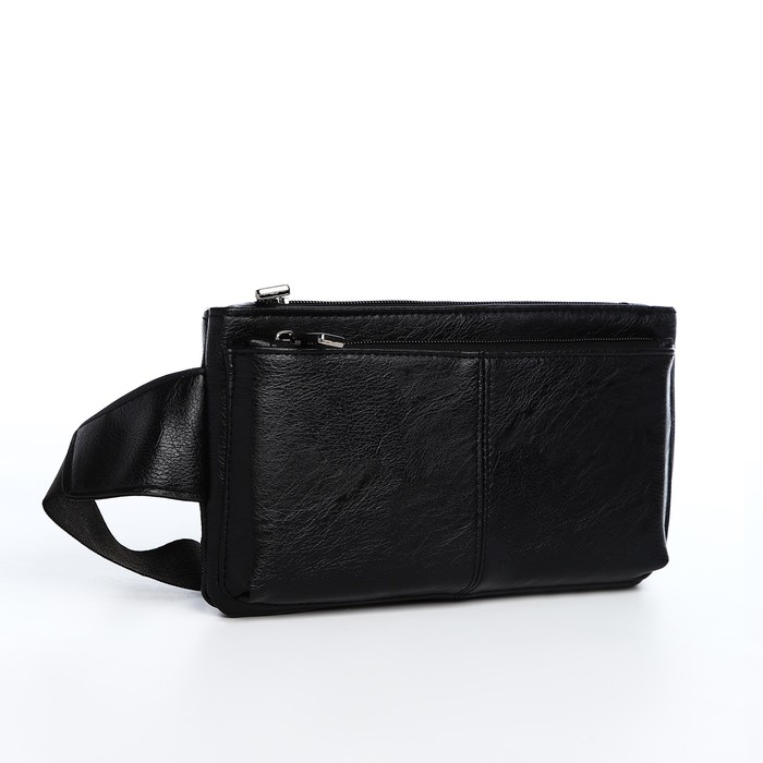 Сумка поясная на молнии, с наружными карманами, 26×1×14 см, чёрная — Характеристики