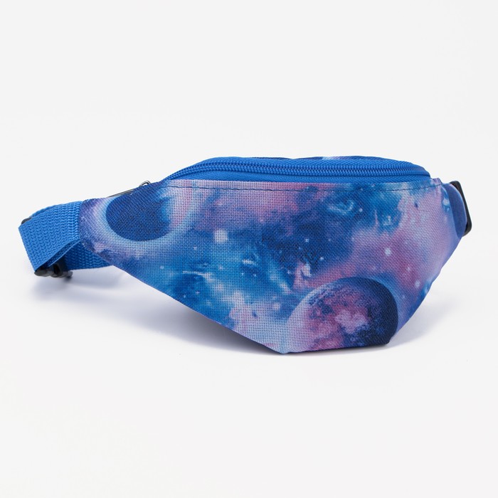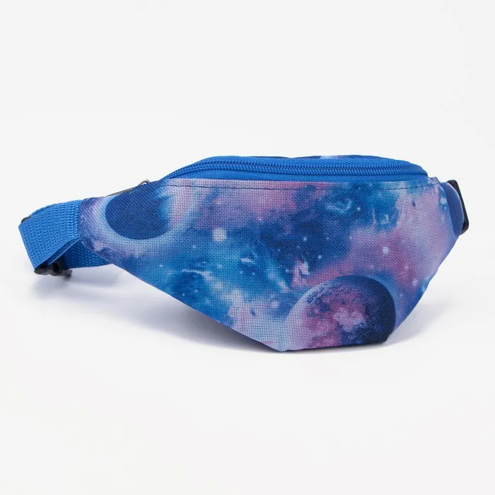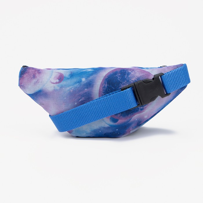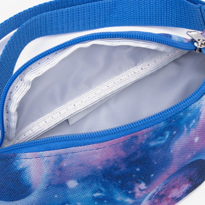 Голубая поясная сумка с молнией — удобный и стильный аксессуар для девочки. Лёгкий полиэстер делает её комфортной для ежедневного ношения, а абстрактный рисунок добавляет современности. Регулируемый ремень помогает подогнать посадку под любой размер.