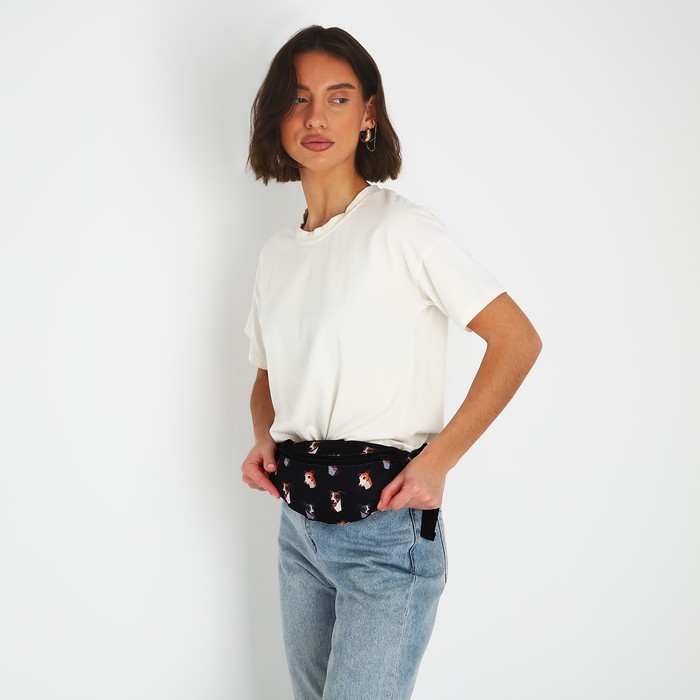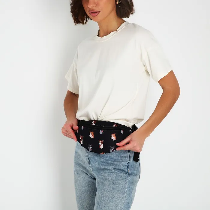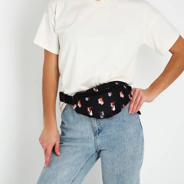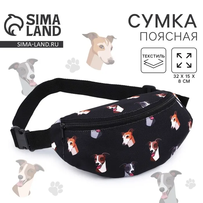 Сумка поясная «Собаки», 32×8×15 см, на молнии, чёрная — Характеристики