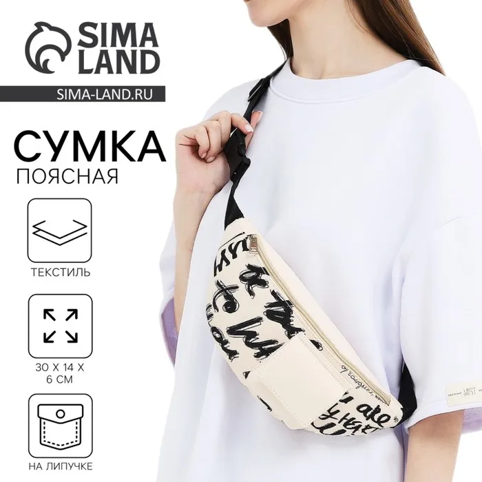 Сумка поясная текстильная с карманом Be true 30×14×6 см — Характеристики