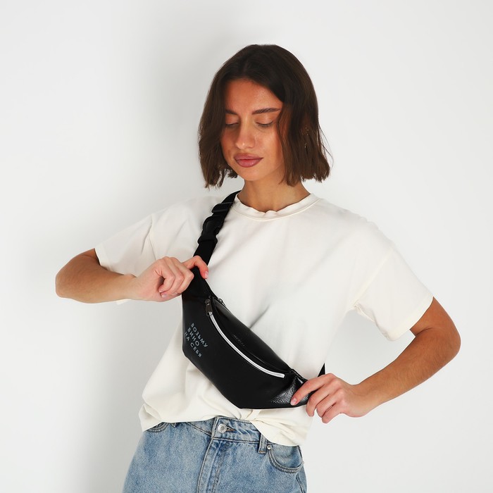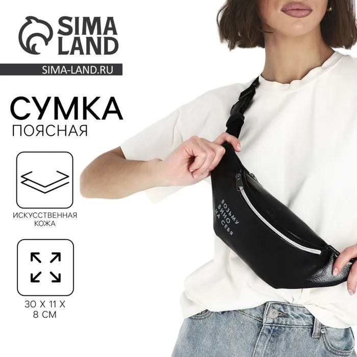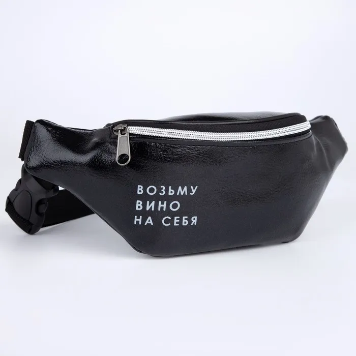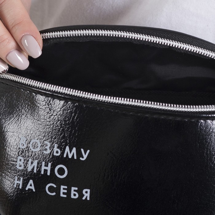 Сумка поясная «Возьму вино на себя», отдел на молнии, чёрная — Характеристики