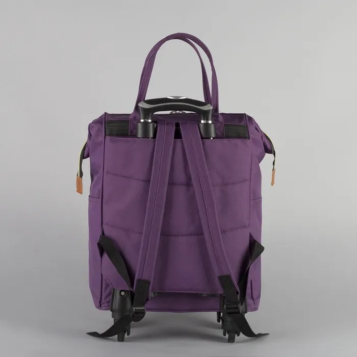 Фиолетовая сумка-рюкзак 2 в 1 на колёсах — практичное решение для современных людей. Изготовленная из долговечного полиэстера, она станет вашим незаменимым спутником. Элегантный дизайн и компактные размеры (длина 35 см, высота 44 см, ширина 20 см) делают её идеальной для повседневного использования или небольших путешествий. Сумка оснащена удобной молнией и обладает внешним карманом для лёгкого доступа к нужным вещам.