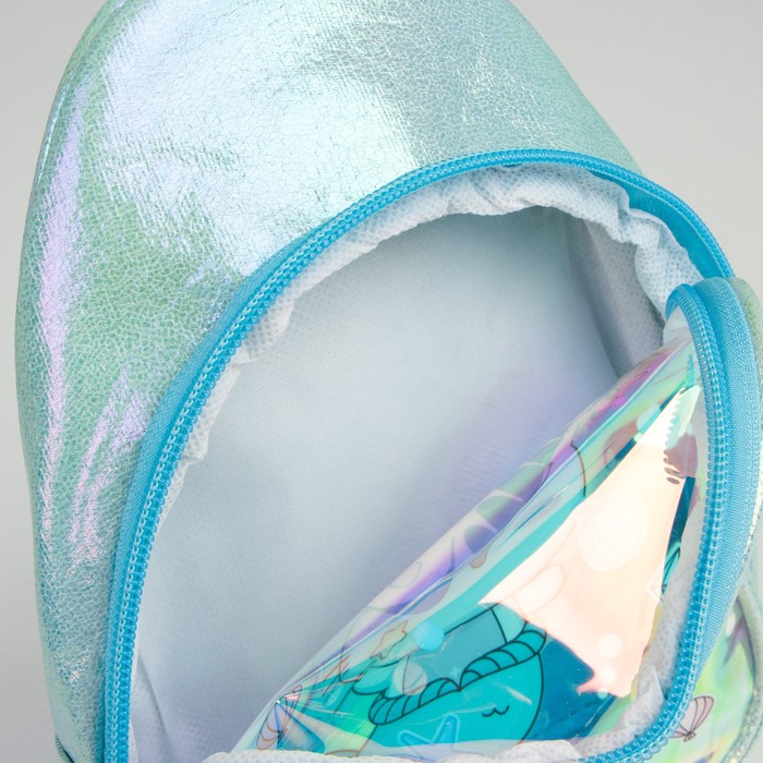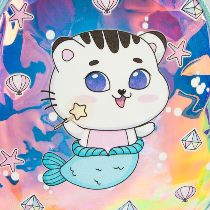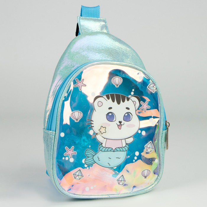Сумка рюкзак детская, через плечо «Котик-русалка» на молнии, голубая — Характеристики
