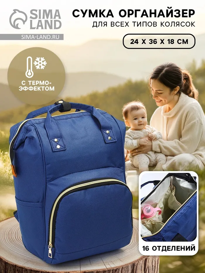 Сумка рюкзак для мамы и малыша с термокарманом, термосумка - портфель, синяя — Характеристики
