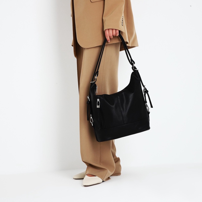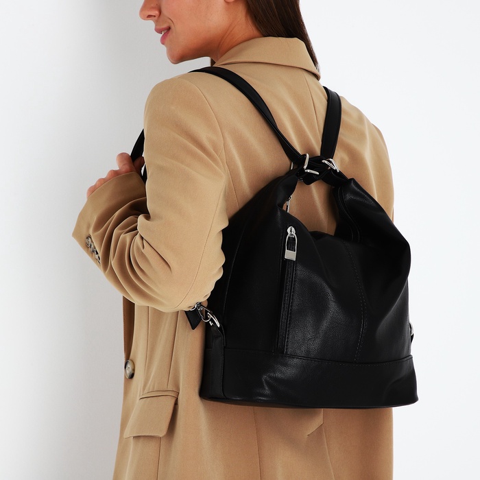 Сумка-рюкзак женская на молнии, 13×30×27 см, чёрная — Характеристики