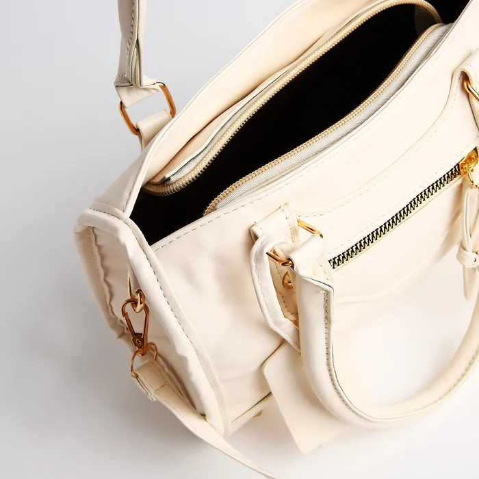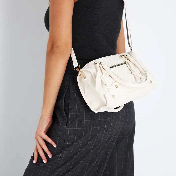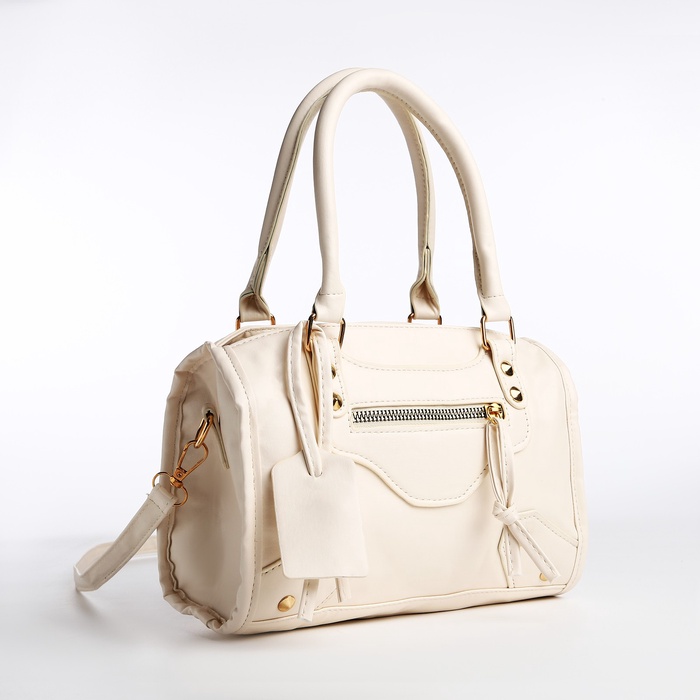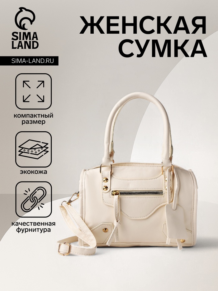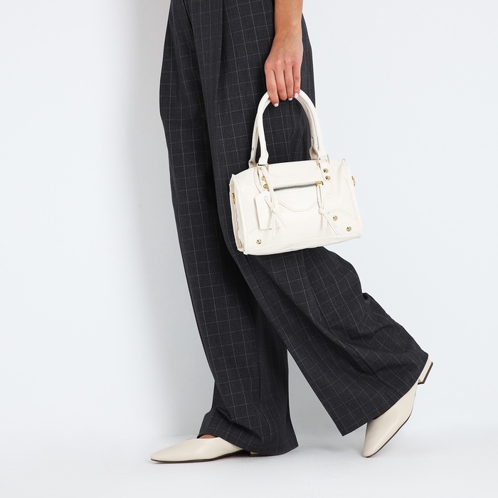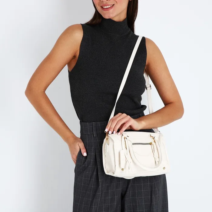Сумка саквояж женская, маленькая, с длинным ремнём, с ручками, белая — Характеристики