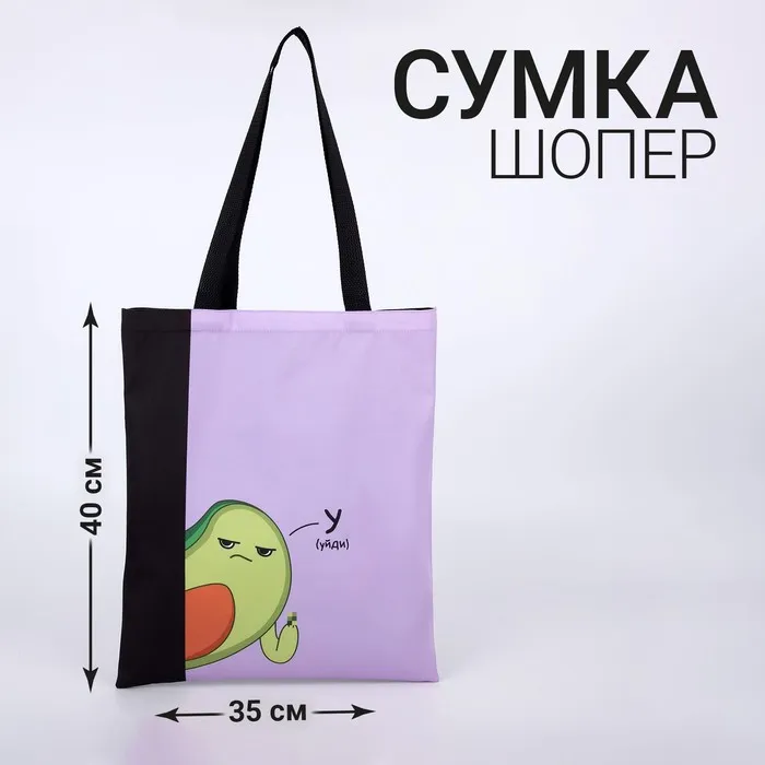 Сумка шопер «Авокадо» 35 х 0,5 х 40, отд без молнии, без подклада, черная — Характеристики
