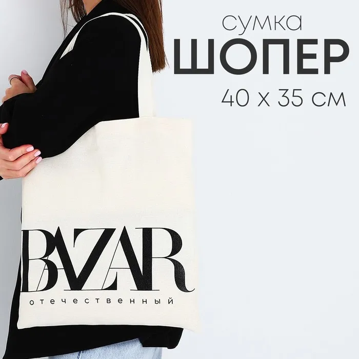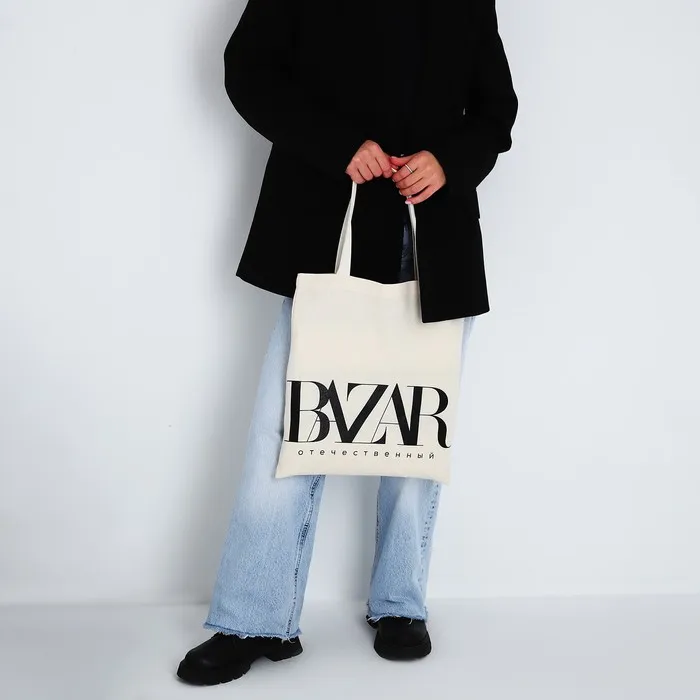 Сумка-шопер Bazar без молнии, без подкладки, бежевая — Характеристики