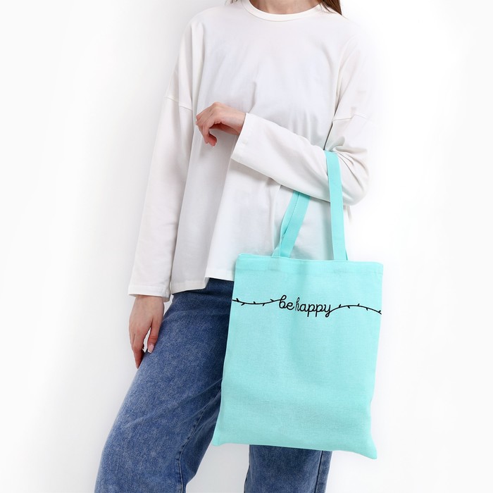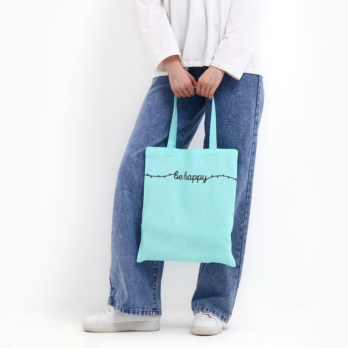 Сумка шопер Be happy, 35×0.5×40 см, голубой — Характеристики