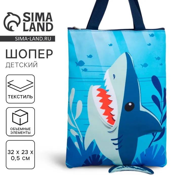 Сумка-шопер детская «Акула», на молнии, 32×23 см — Характеристики