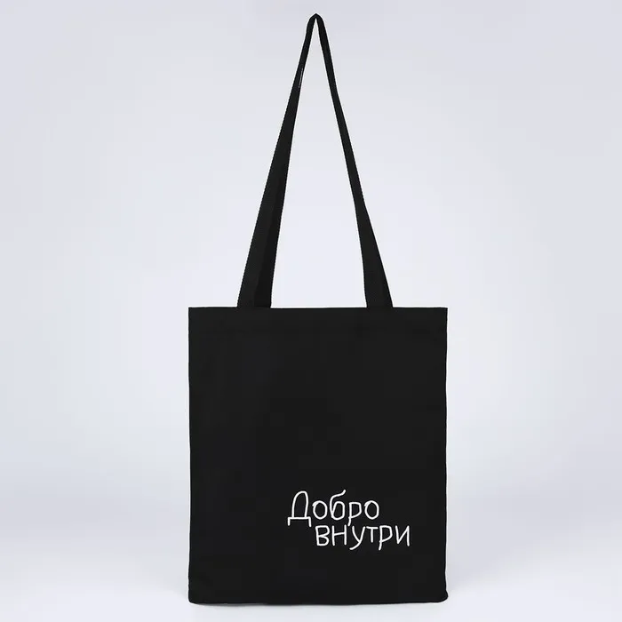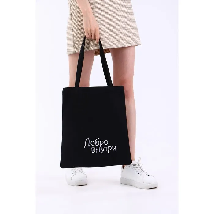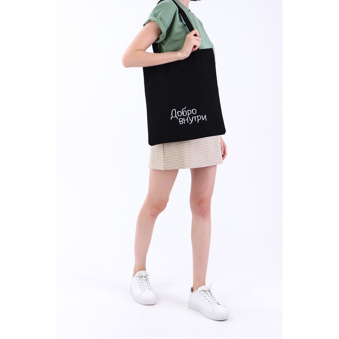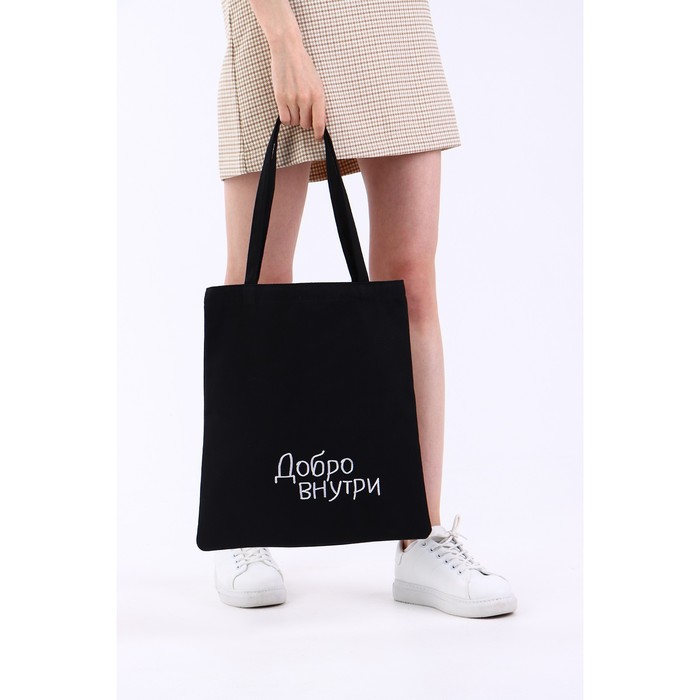 Сумка шопер «Добро внутри», 35×0.5×40 см, вышивка, чёрный — Характеристики