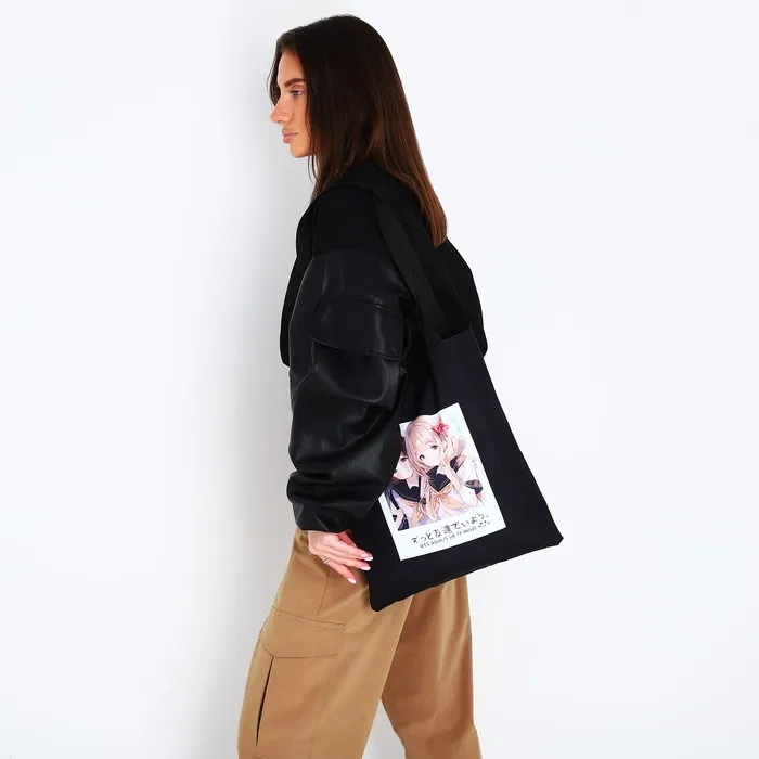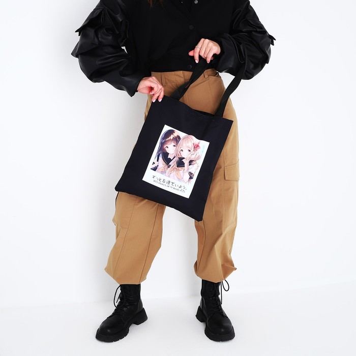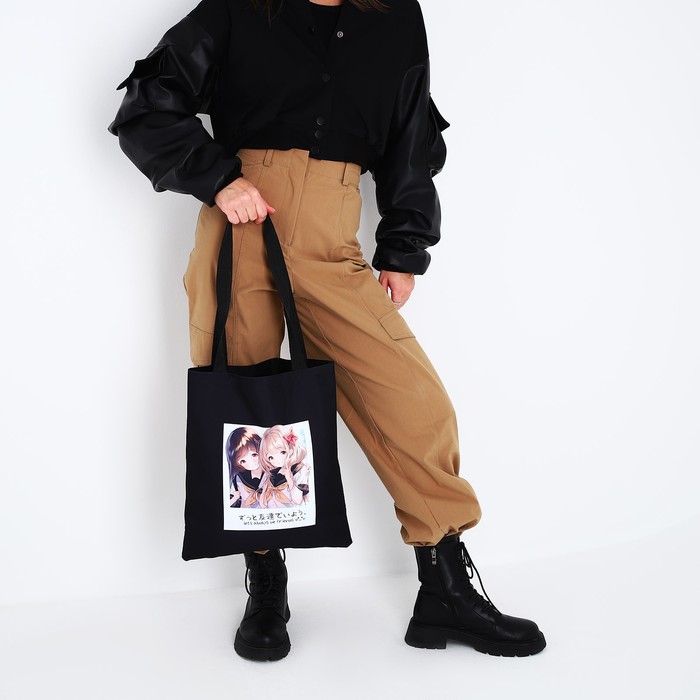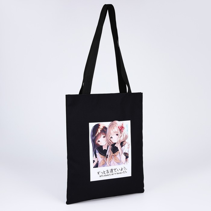 Сумка шопер Friends, аниме, 35×0.5×40 см, отдел без молнии, без подклада, чёрный — Характеристики