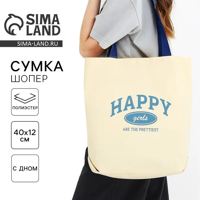 Сумка шопер Happy girl, 40×12×38, бежевый — Характеристики