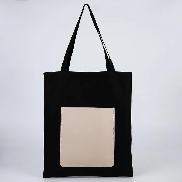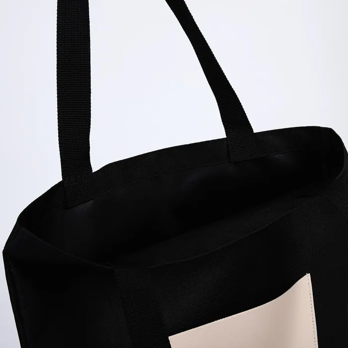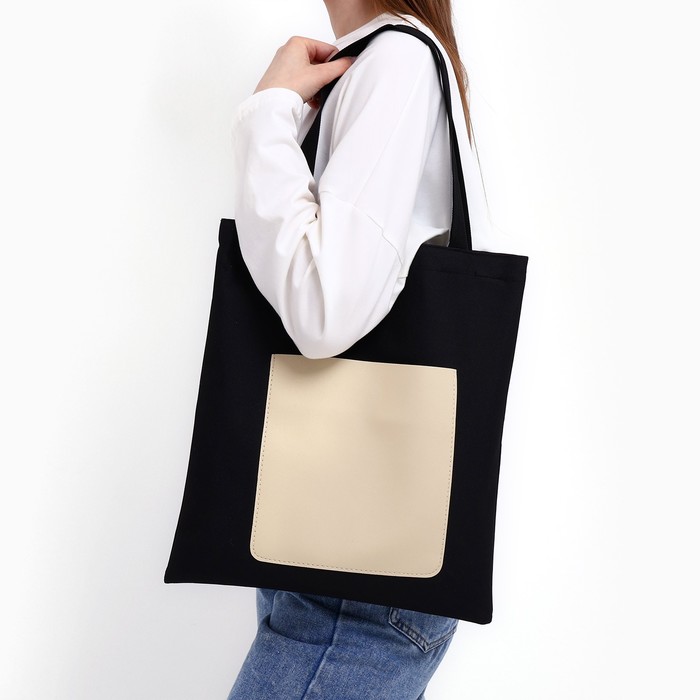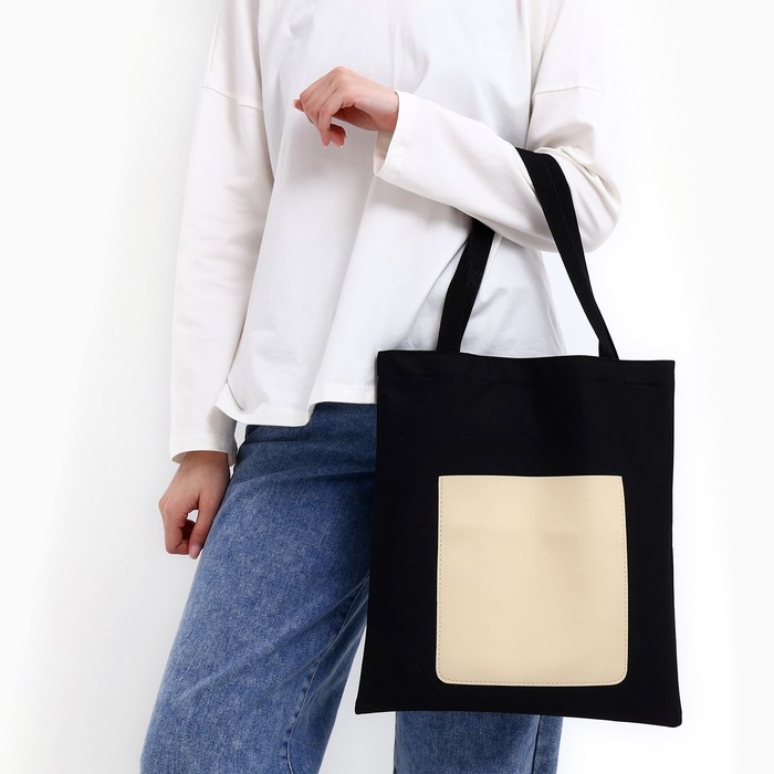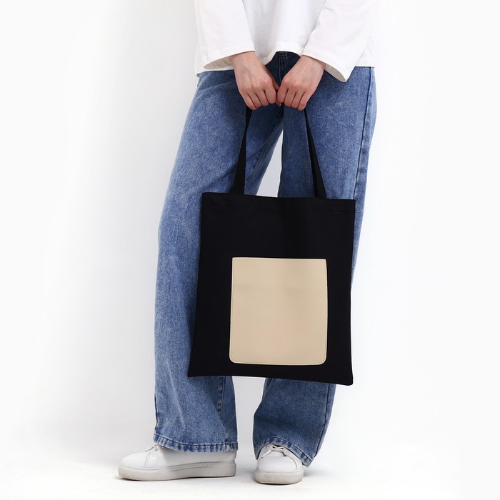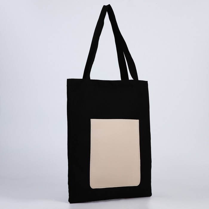 Сумка шопер, карман кожзам, чёрный, 40×35 см