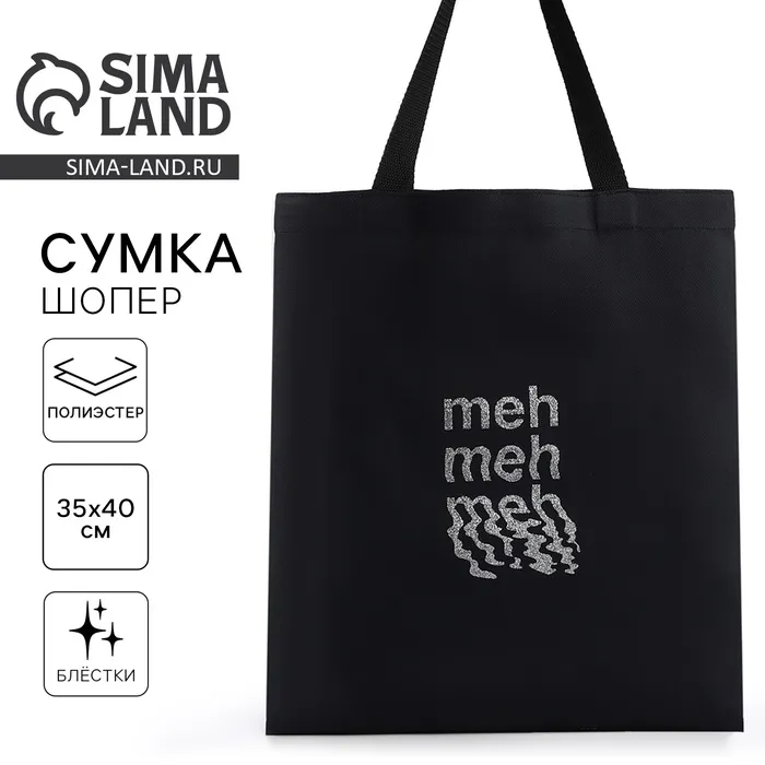 Сумка шопер Meh, 35×0.5×40, без подклада, чёрный — Характеристики
