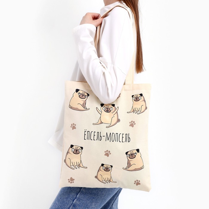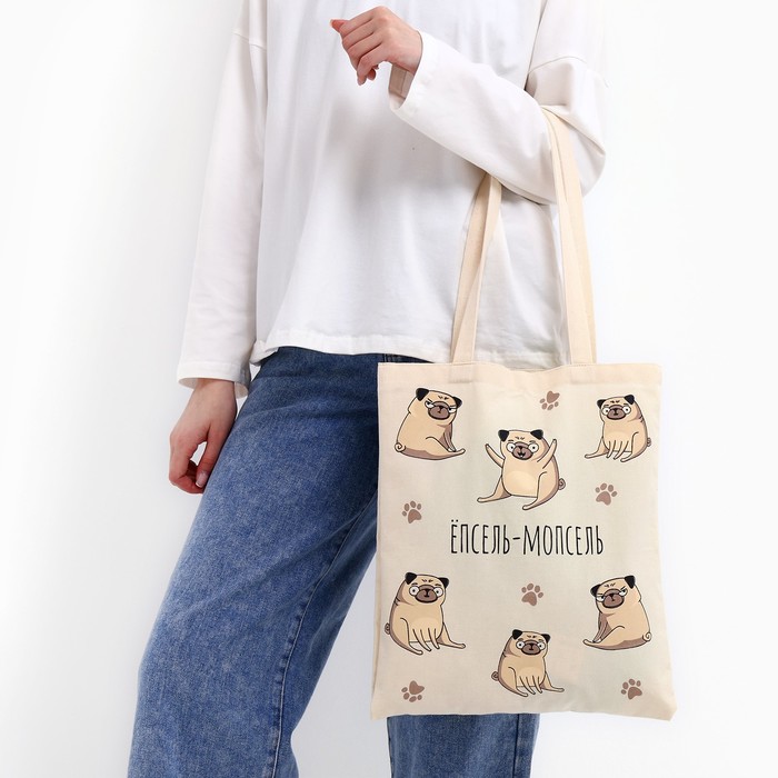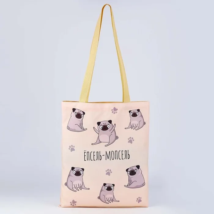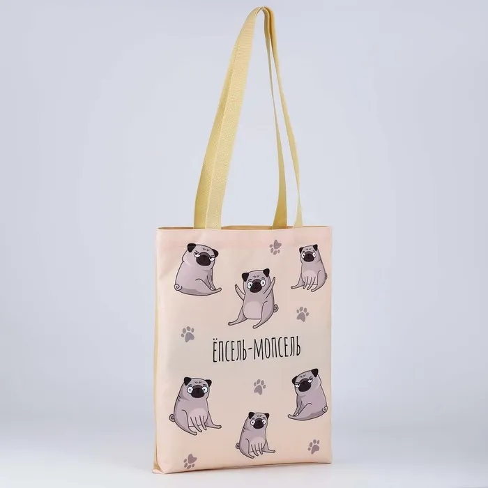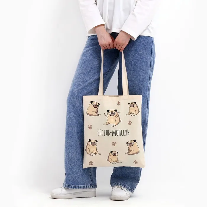 Сумка шопер «Мопс» без молнии, без подклада, бежевая — Характеристики