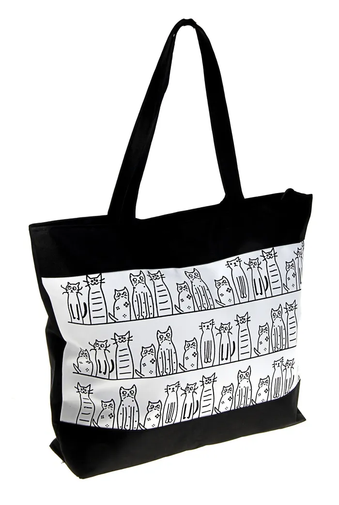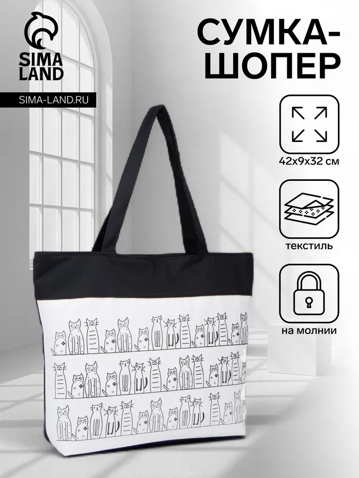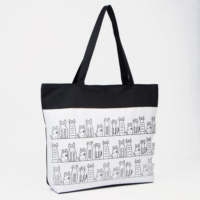 Сумка-шопер на молнии, с подкладом, цвет бежевый/чёрный — Характеристики