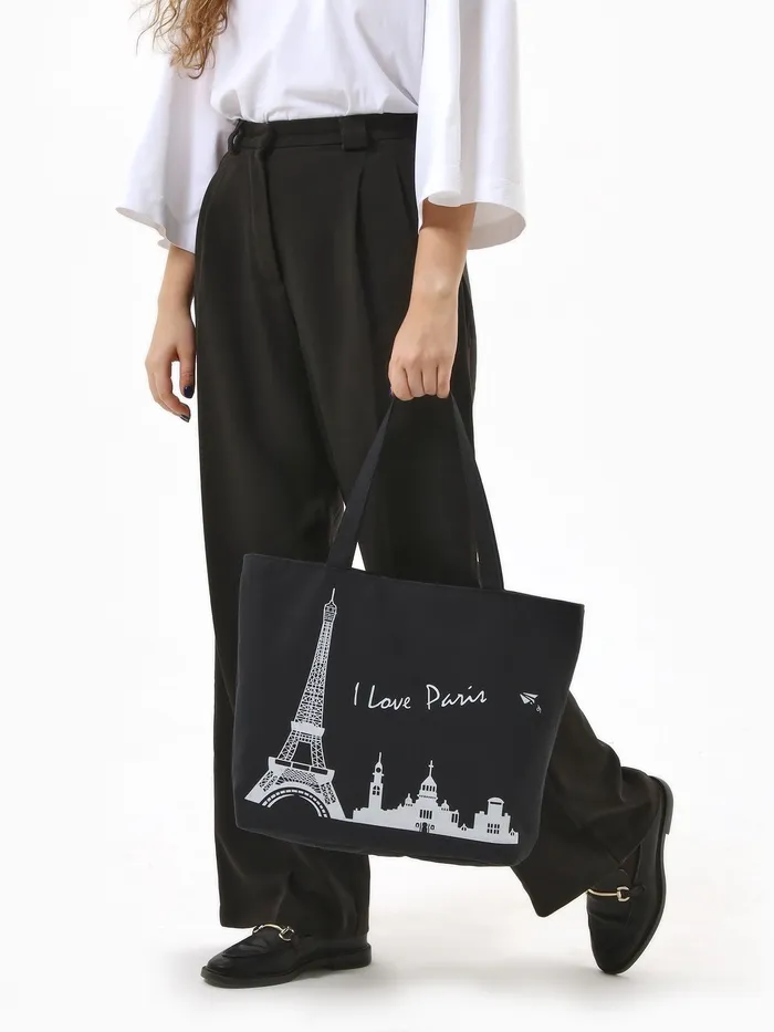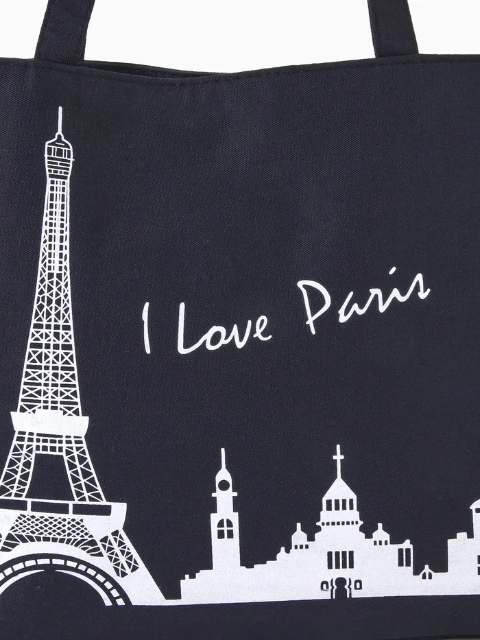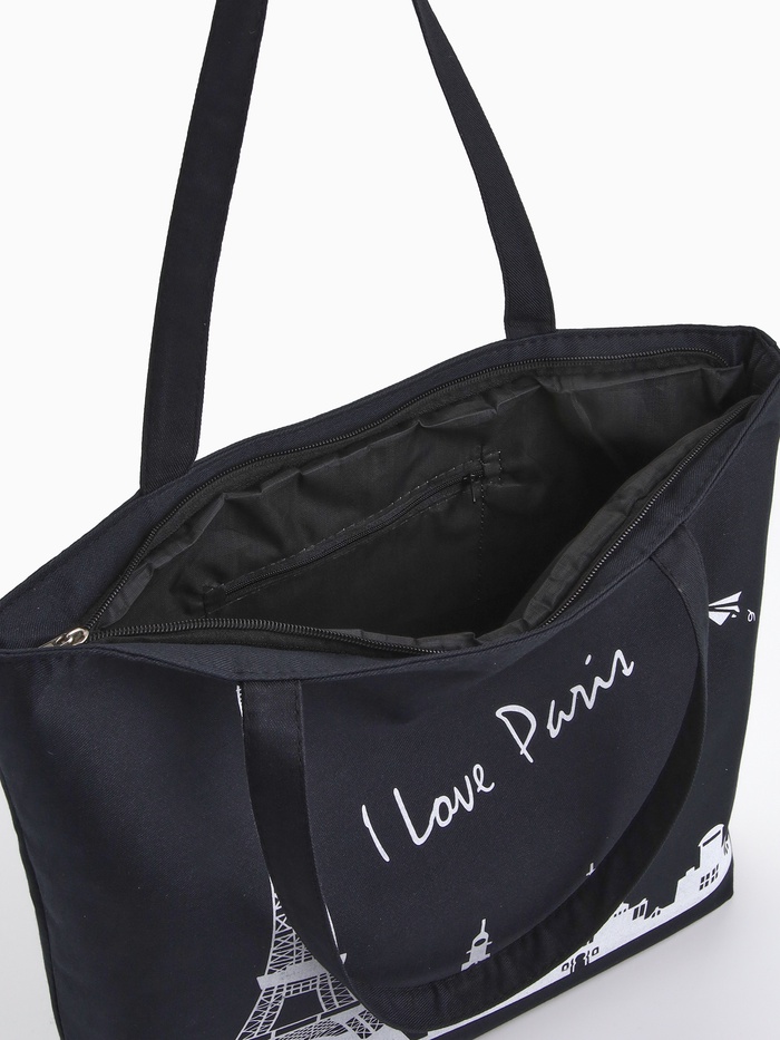 Сумка-шопер на молнии, с принтом I love Paris, чёрная/белая — Характеристики