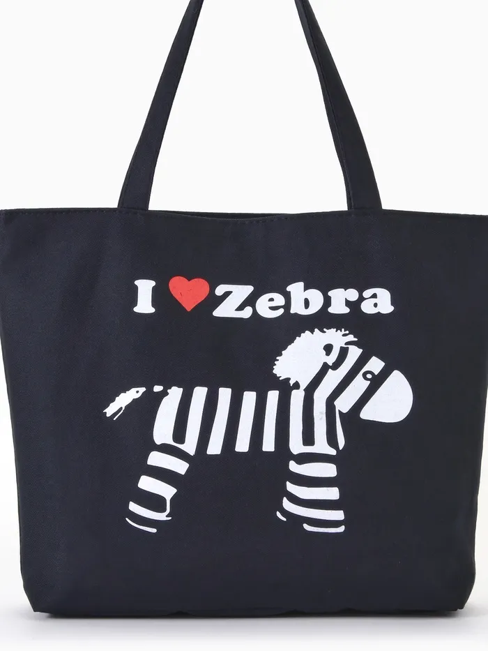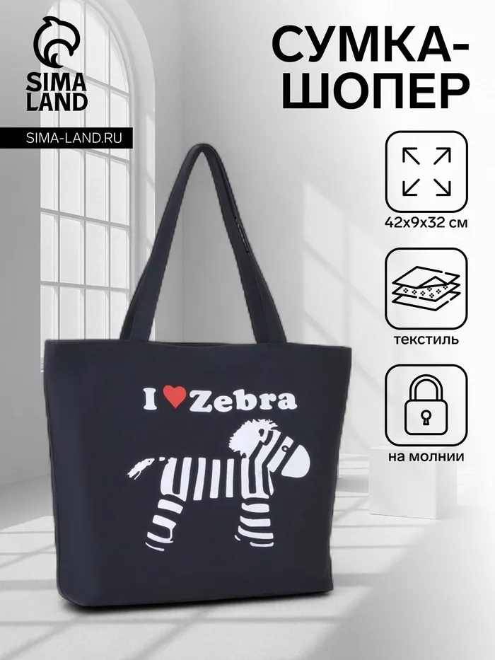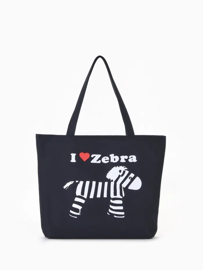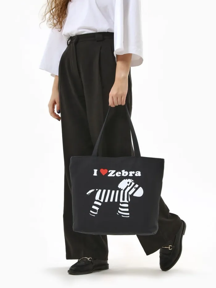 Сумка-шопер на молнии, с принтом I love zebra, чёрная/белая — Характеристики