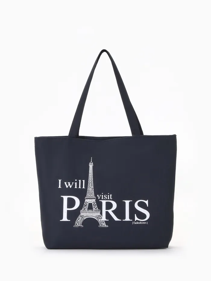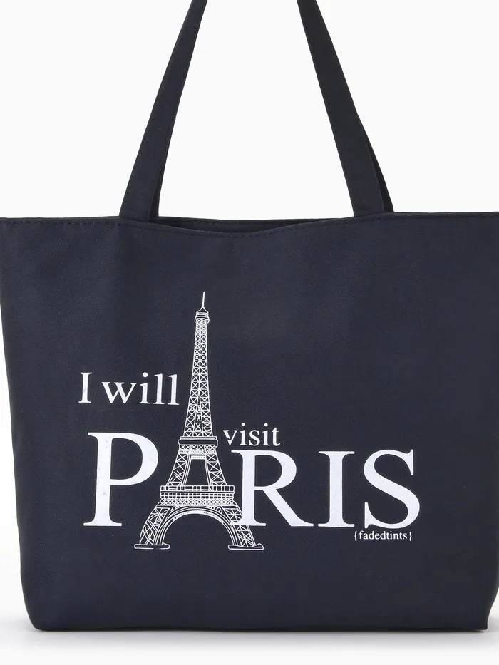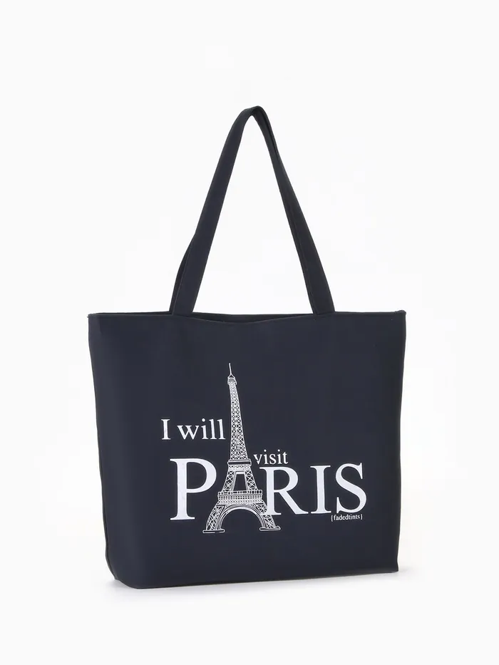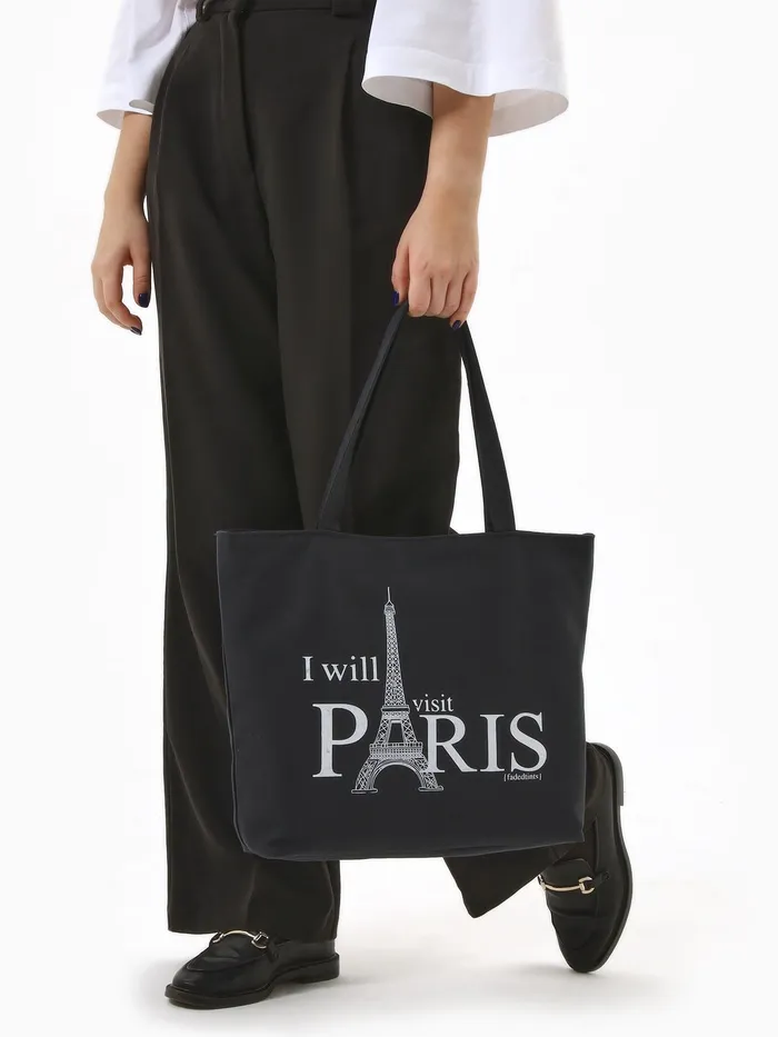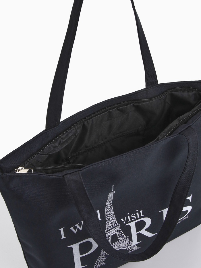 Сумка-шопер на молнии, с принтом I will visit Paris, чёрная/белая — Характеристики