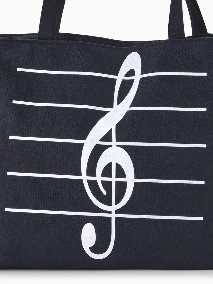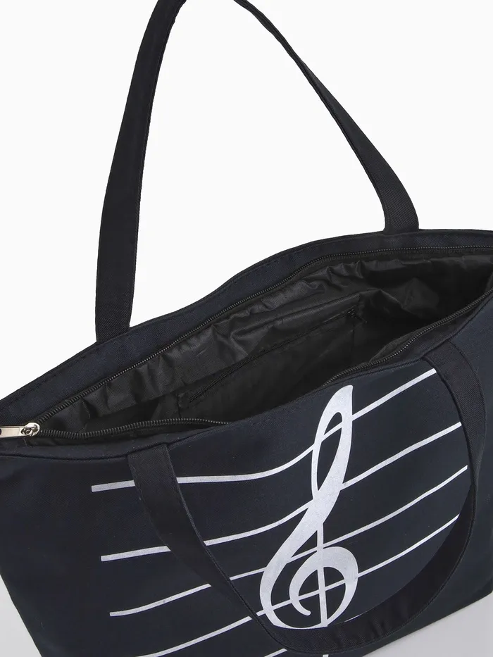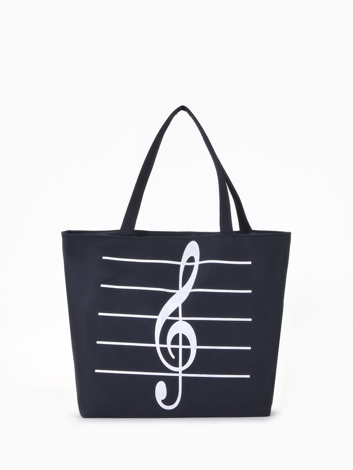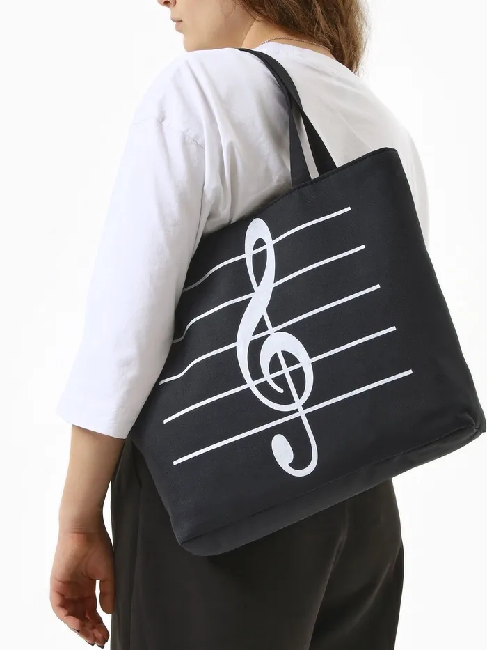Сумка-шопер на молнии, с принтом Music, чёрная/белая — Характеристики