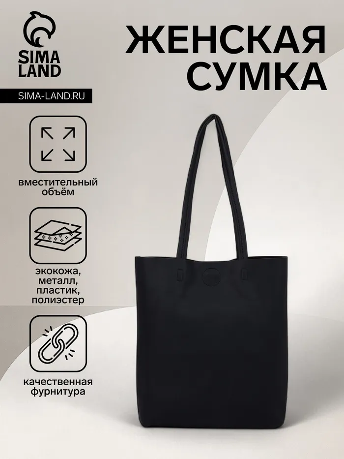 Сумка шопер однотонный, без застёжки, чёрный — Характеристики