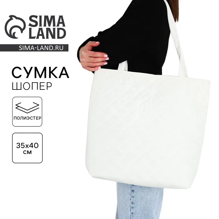 Сумка-шопер, однотонный, болоньевый, 40×35×7 см, белый — Характеристики