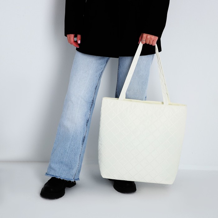 Сумка-шопер, однотонный, болоньевый, 40×35×7 см, белый